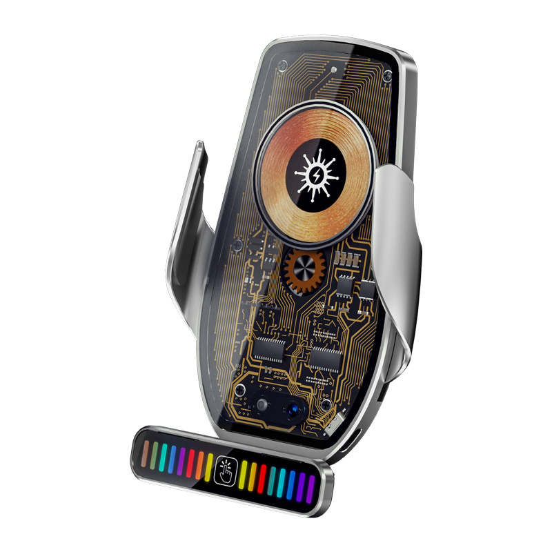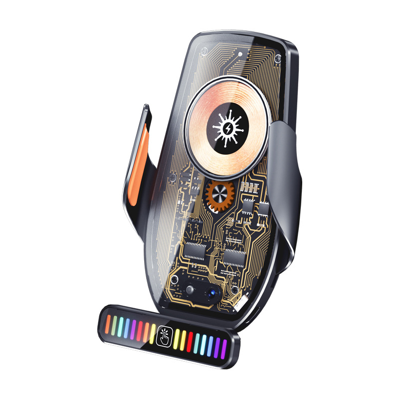 R20 새로운 펑크 자동차 전화 15W 무선 고속 충전 브래킷 자동차 자동 감지 분위기 다채로운 조명