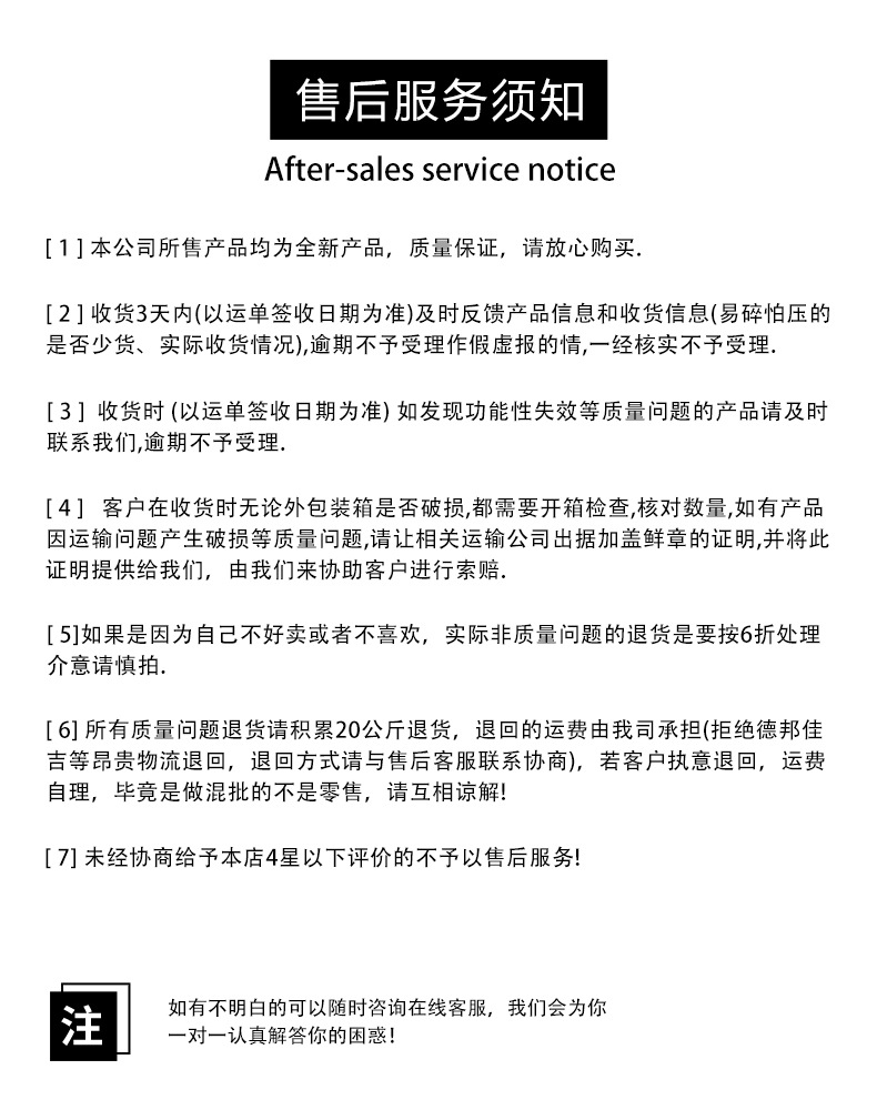 2. 产品图片、属性等信息若有误,请帮忙指正,本公司不接受任何国内打假团队恶意打假,因为本店铺所有产品都为外贸出口专供!