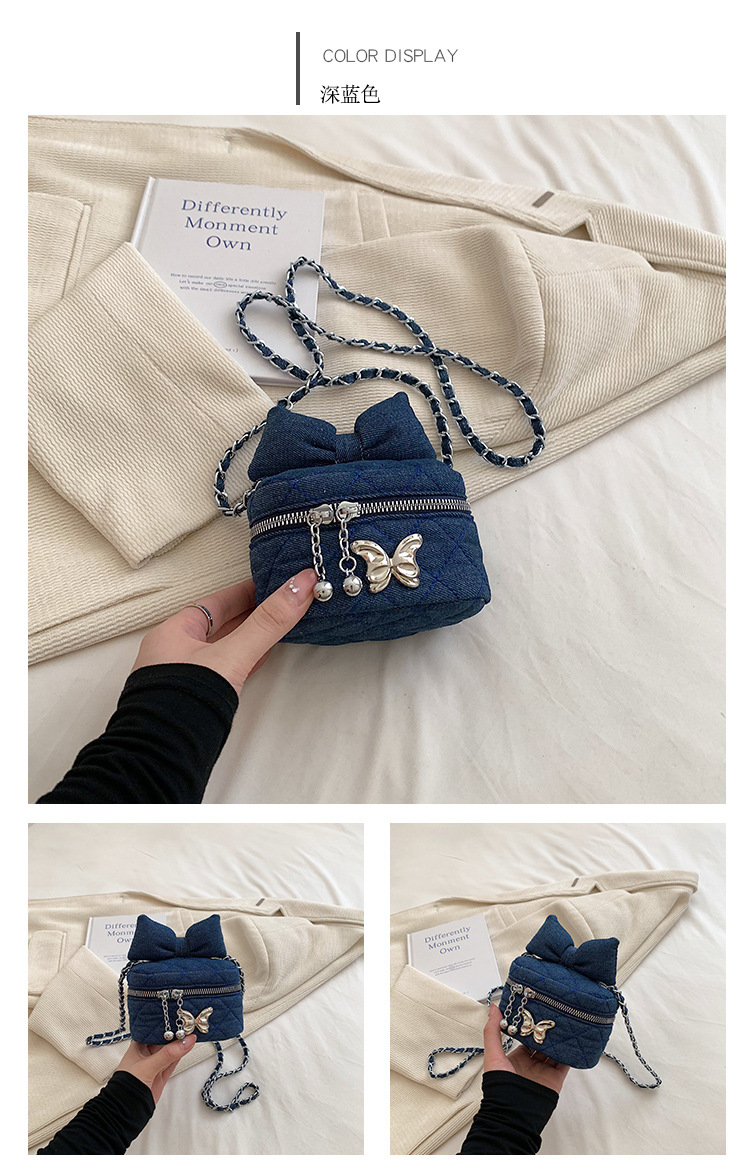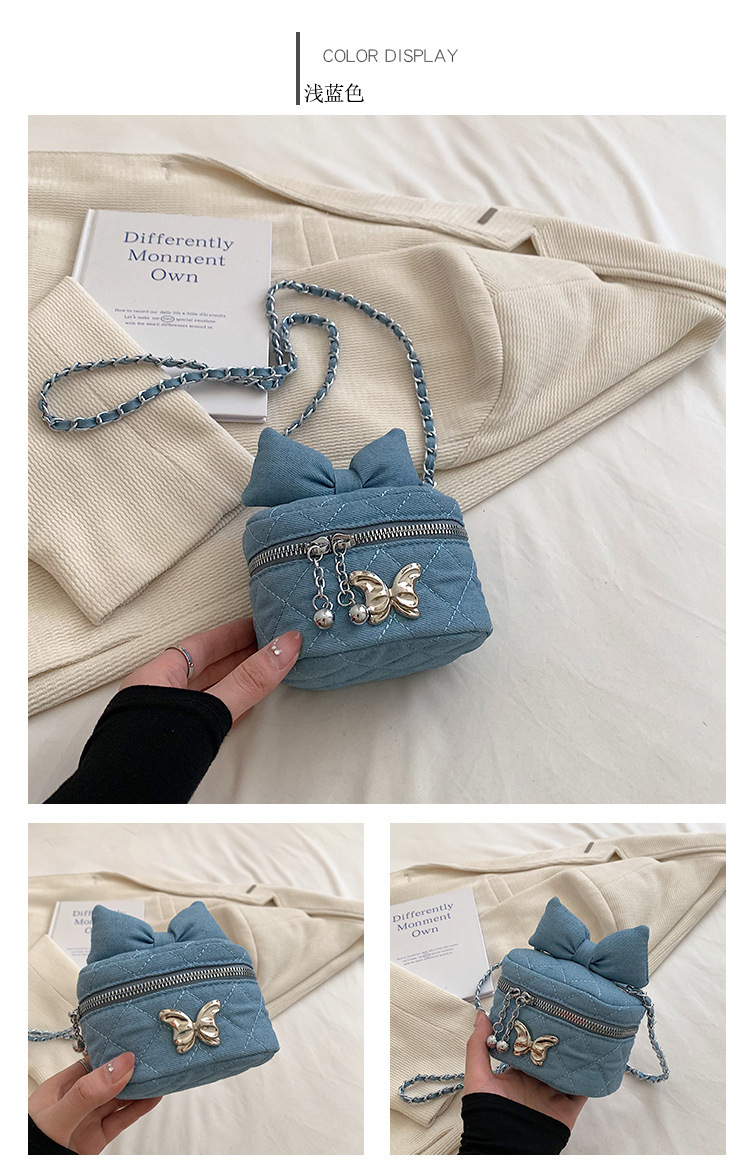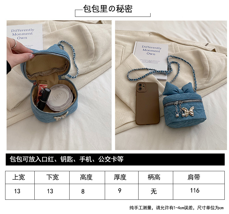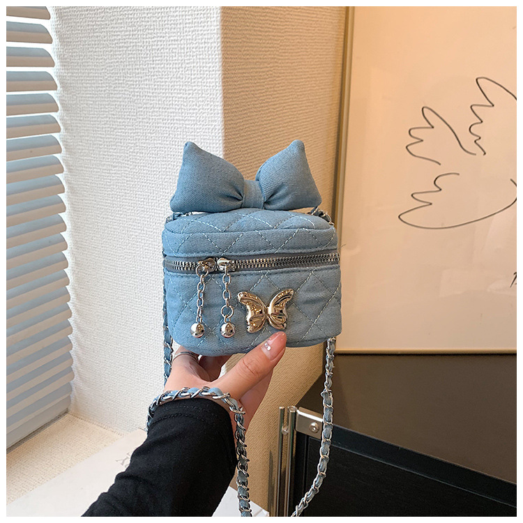 Lingge 체인 가방 여자의 2023 새로운 틈새 디자인 데님 어깨 크로스 바디 가방 인터넷 인기 버킷 백스토어 가기