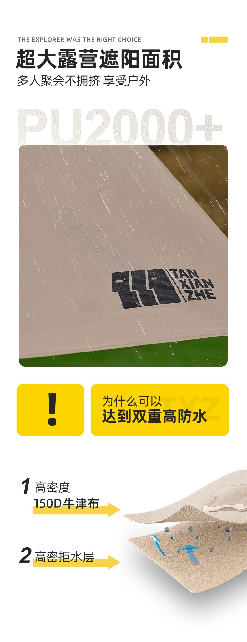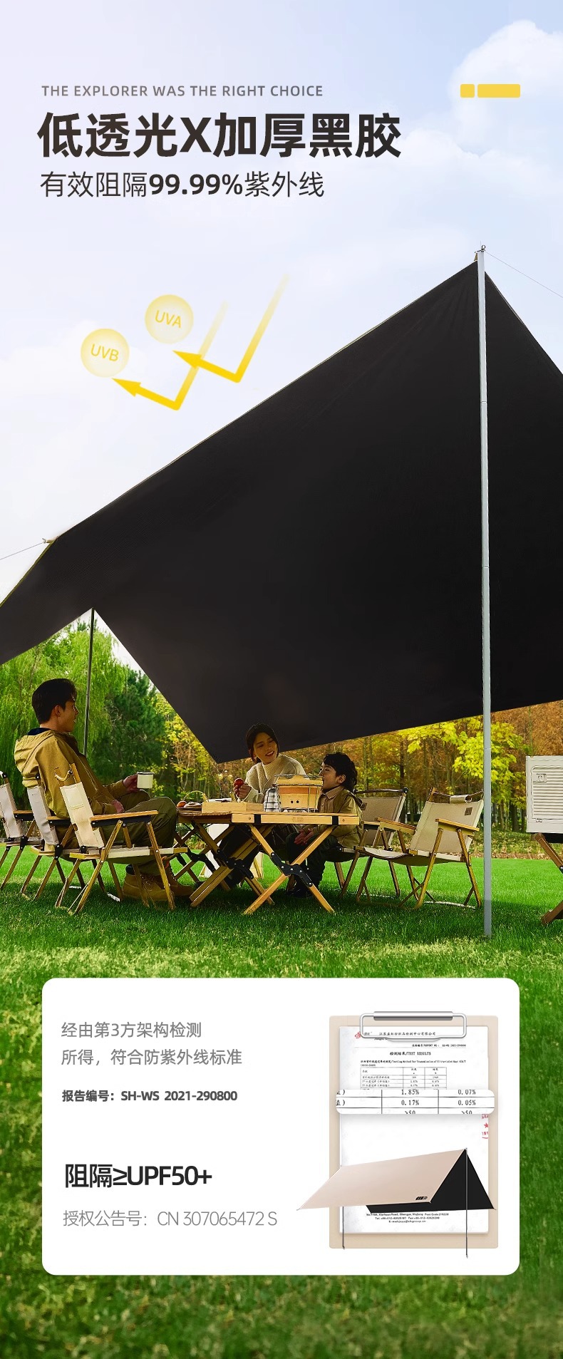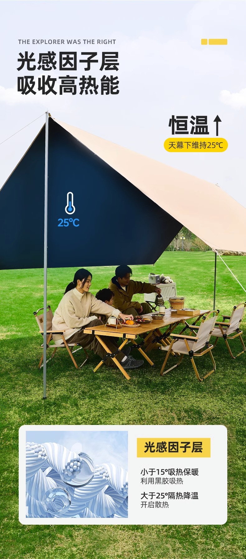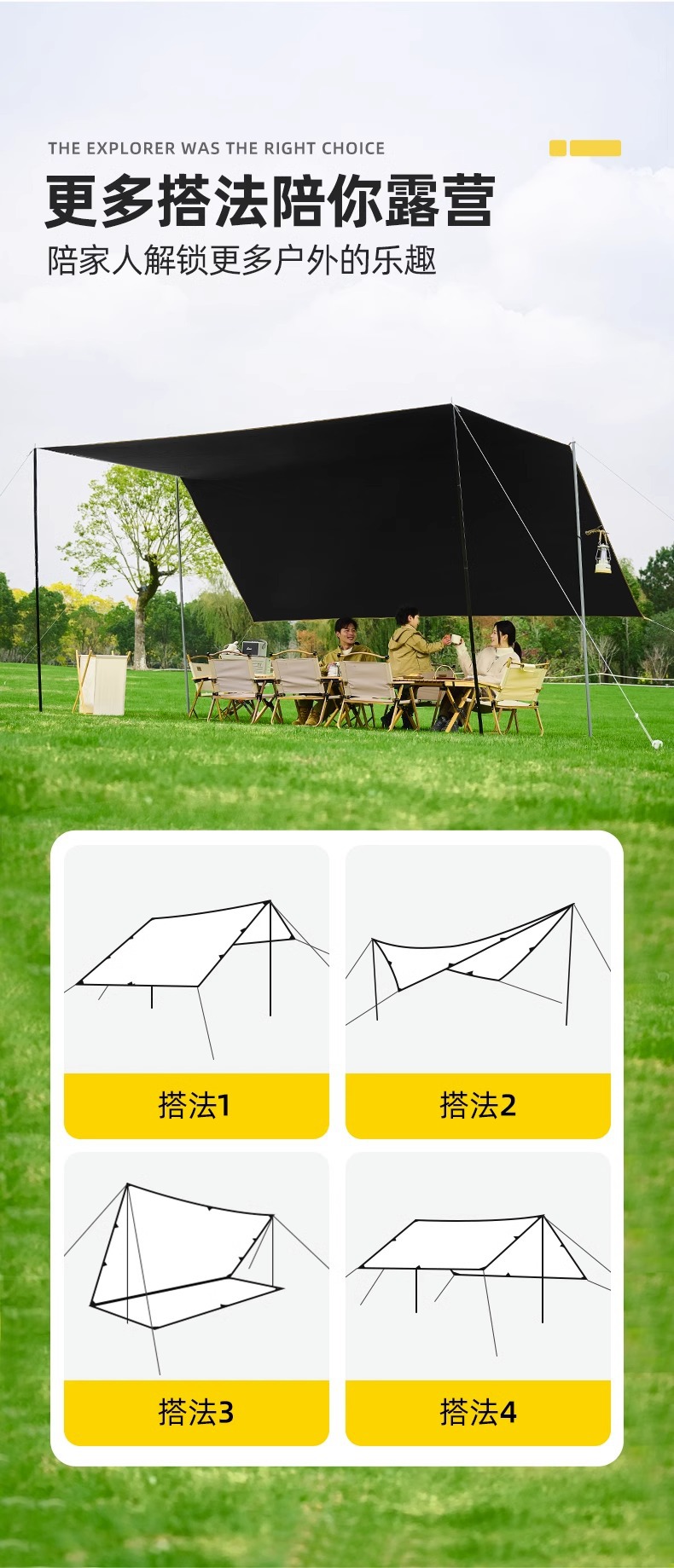 익스플로러 블랙 접착제 캐노피 텐트 야외 태양 보호 캠핑 캐노피 천 휴대용 방수 코팅 피크닉 천막