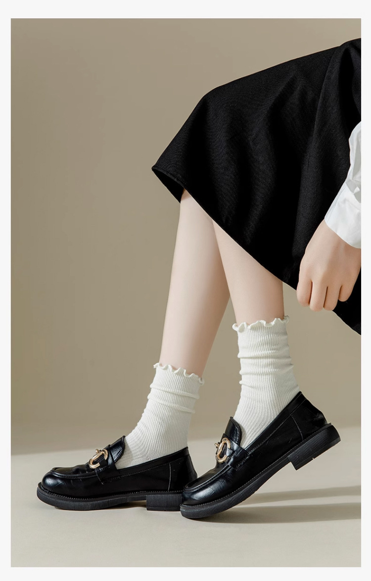 나무 귀 양말 숙녀 튜브 양말 여름 얇은 더미 양말 여름 흑백 가을 스타킹 로퍼 조수