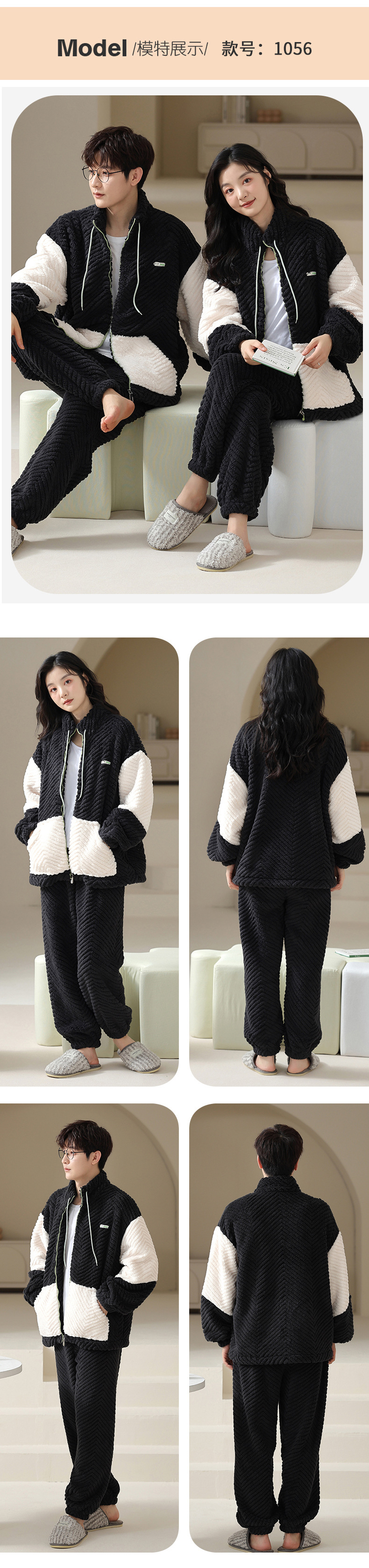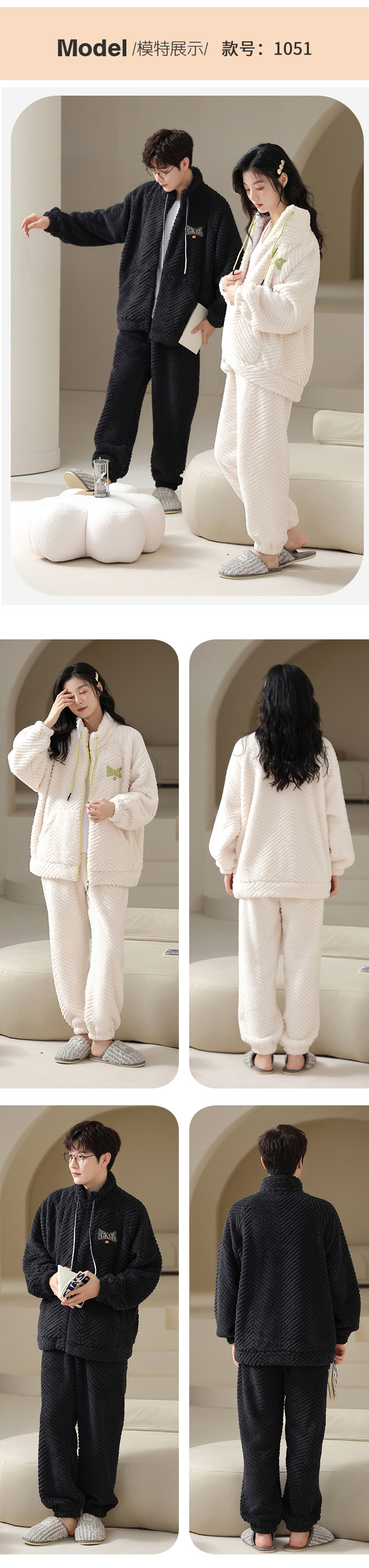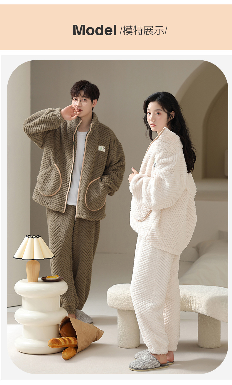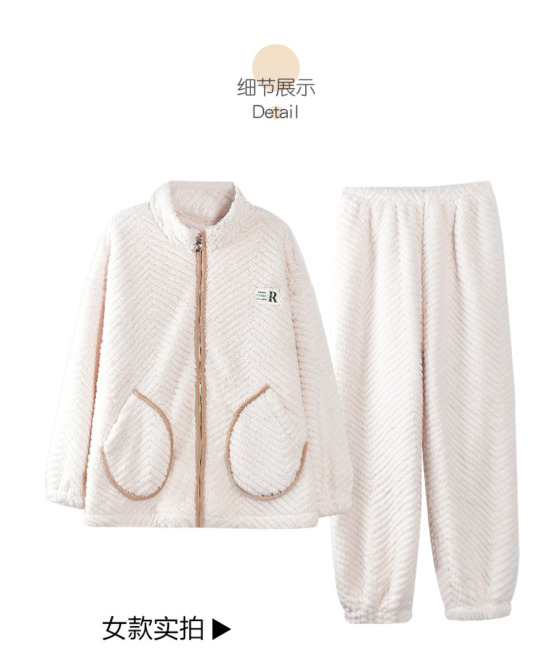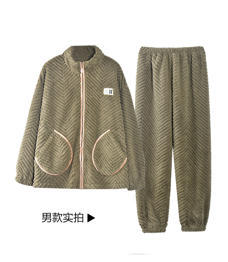 겨울 커플 잠옷 여성용 산호 벨벳 지퍼 심플 긴팔 스탠드 칼라 보온 세트 두꺼운 남성용 홈웨어스토어 가기