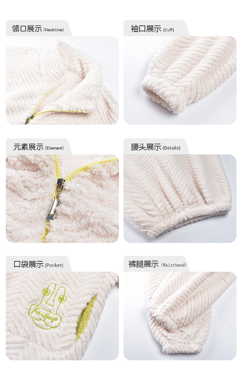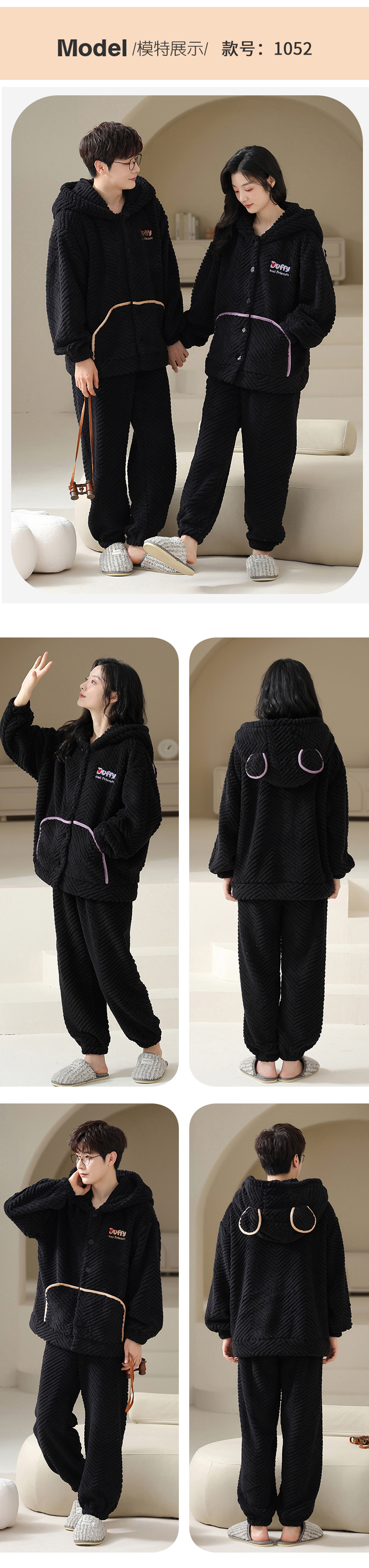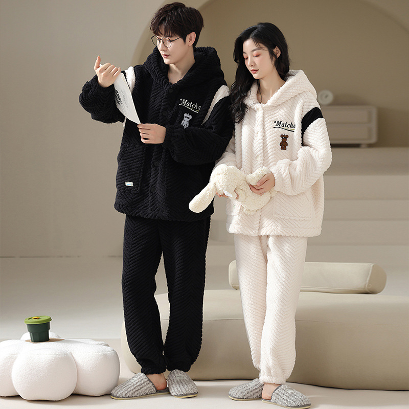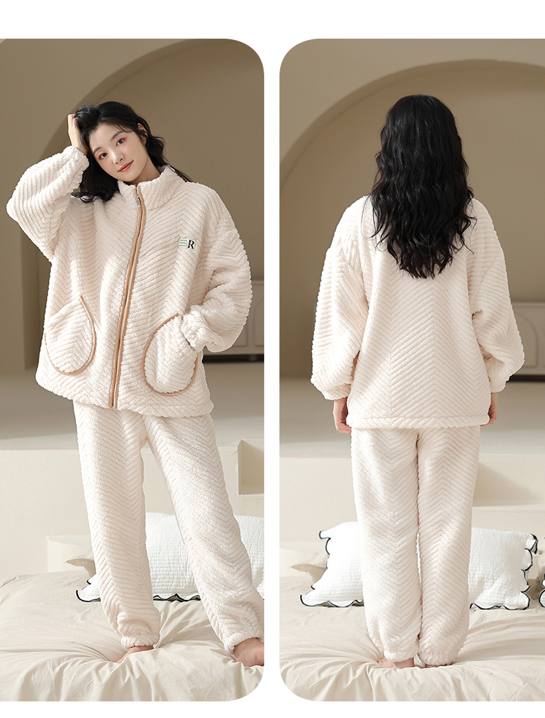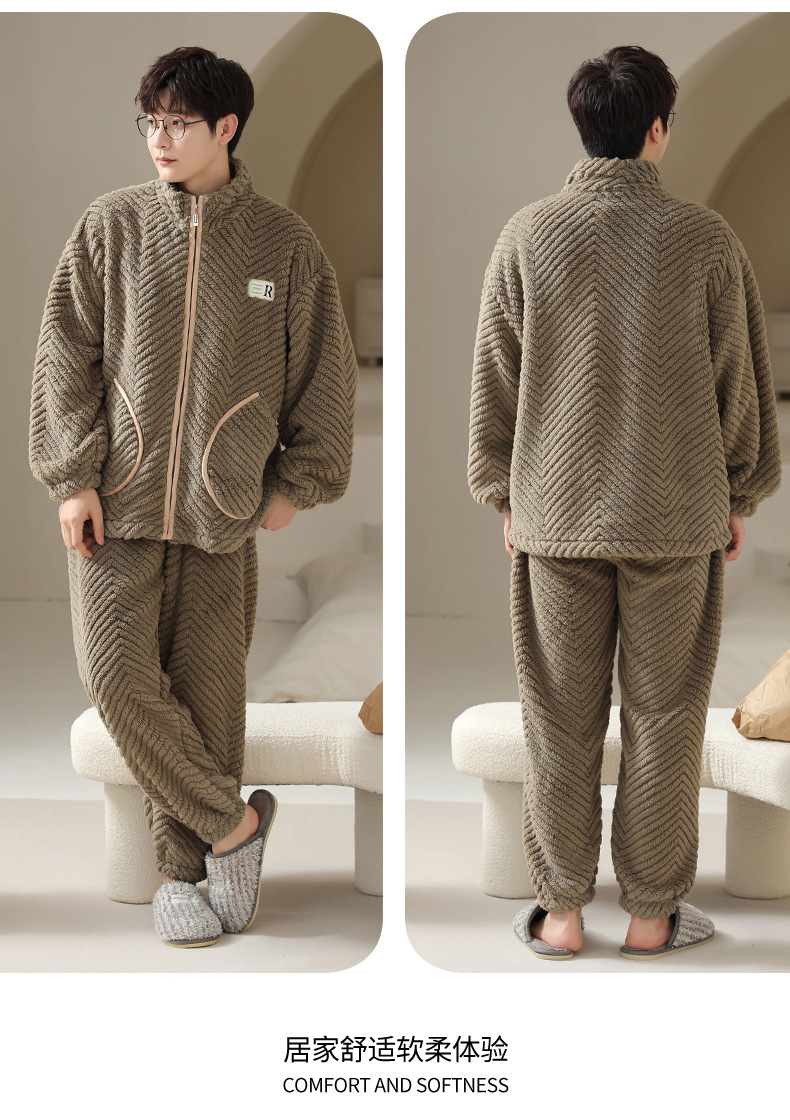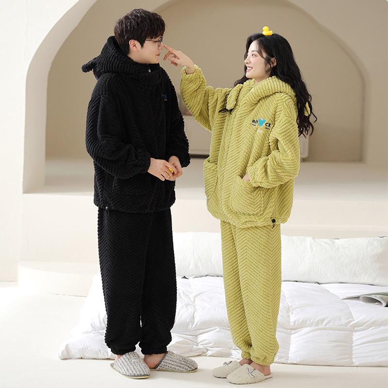겨울 커플 잠옷 여성용 산호 벨벳 지퍼 심플 긴팔 스탠드 칼라 보온 세트 두꺼운 남성용 홈웨어스토어 가기