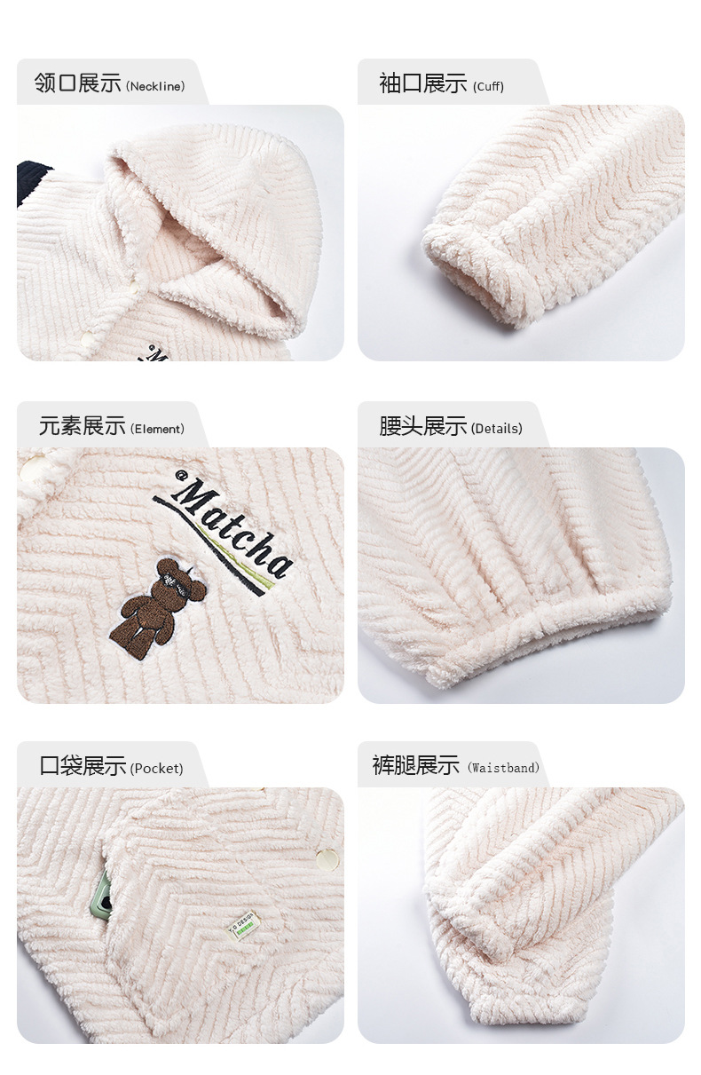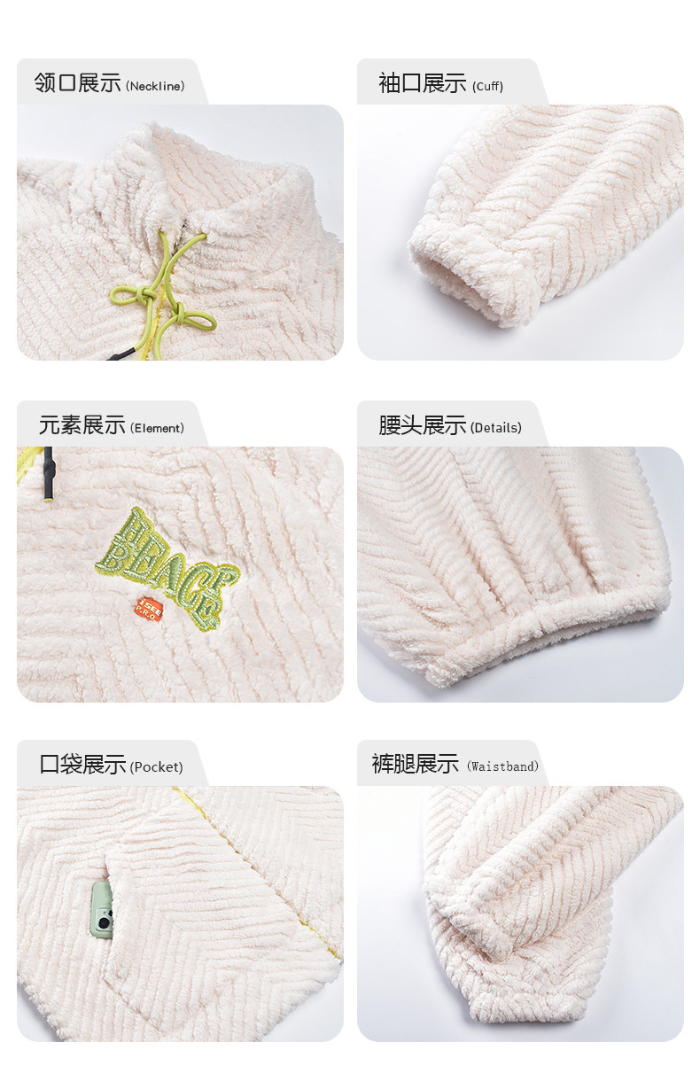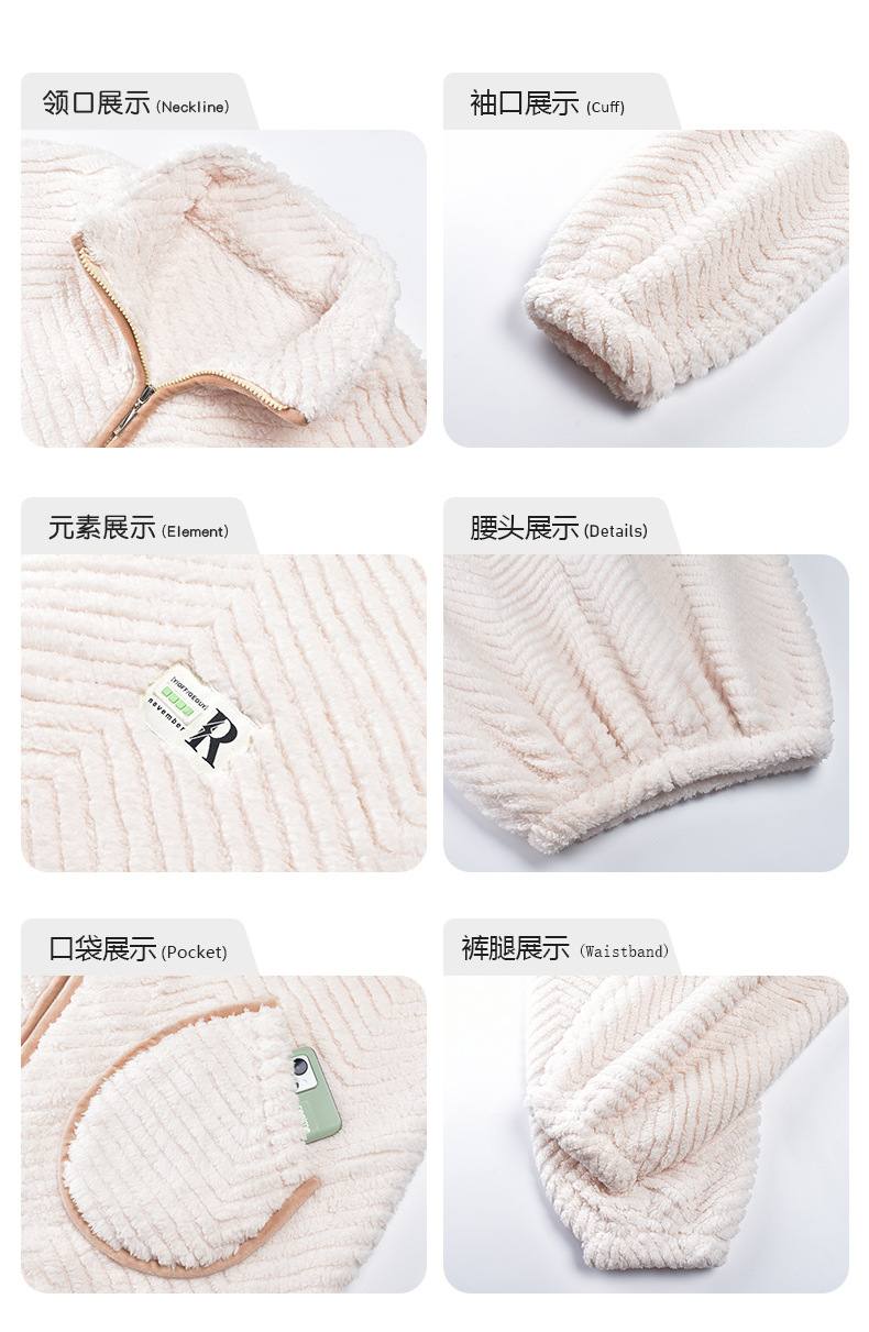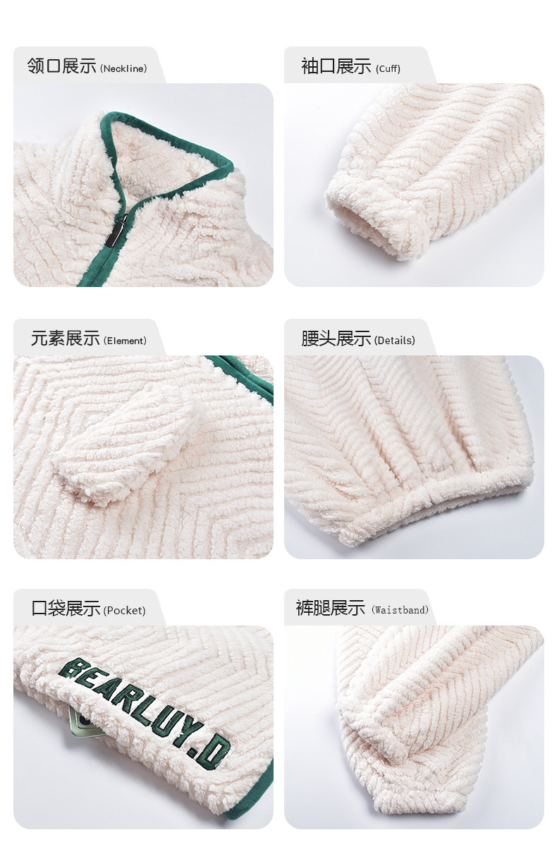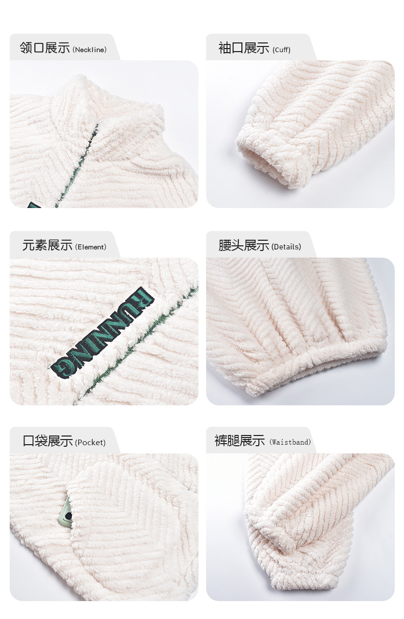 겨울 커플 잠옷 여성용 산호 벨벳 지퍼 심플 긴팔 스탠드 칼라 보온 세트 두꺼운 남성용 홈웨어스토어 가기