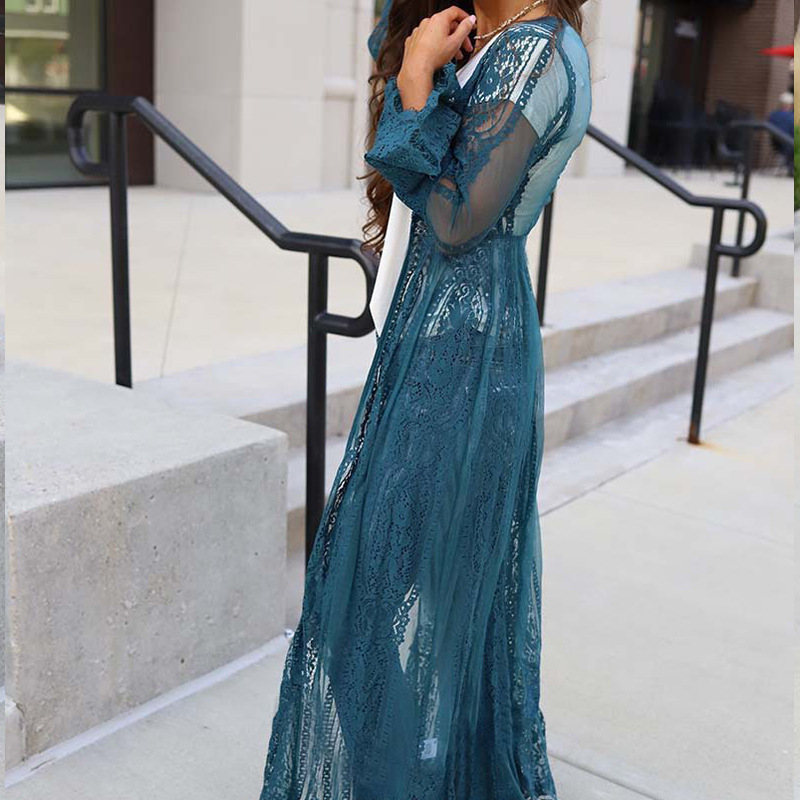 국경 간 대외 무역 자수 메쉬 비키니 외부 긴 소매 가디건 면사 휴일 스타일 비치 블라우스 자외선 차단제 의류