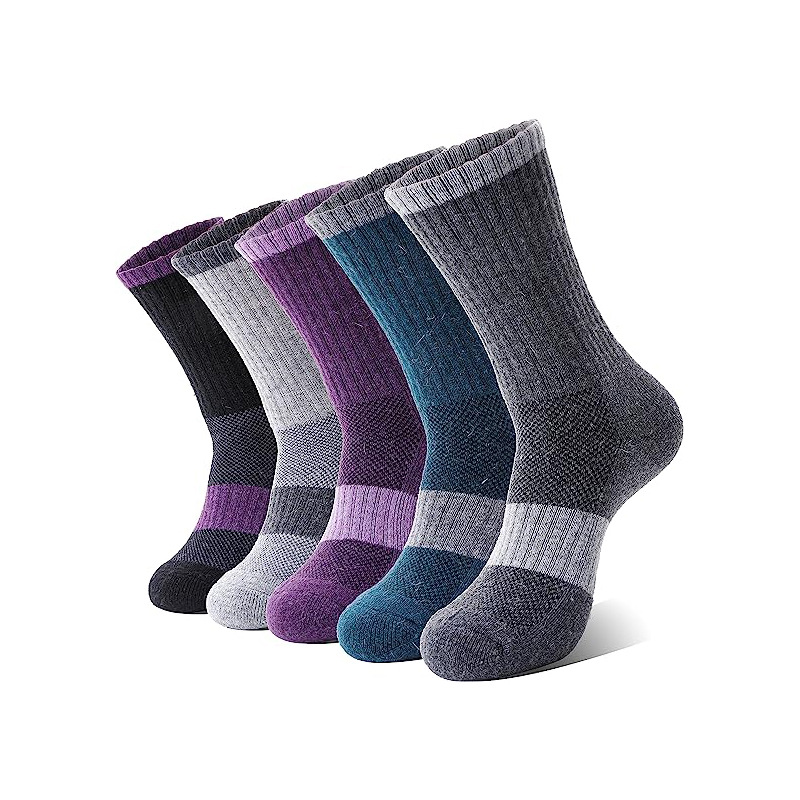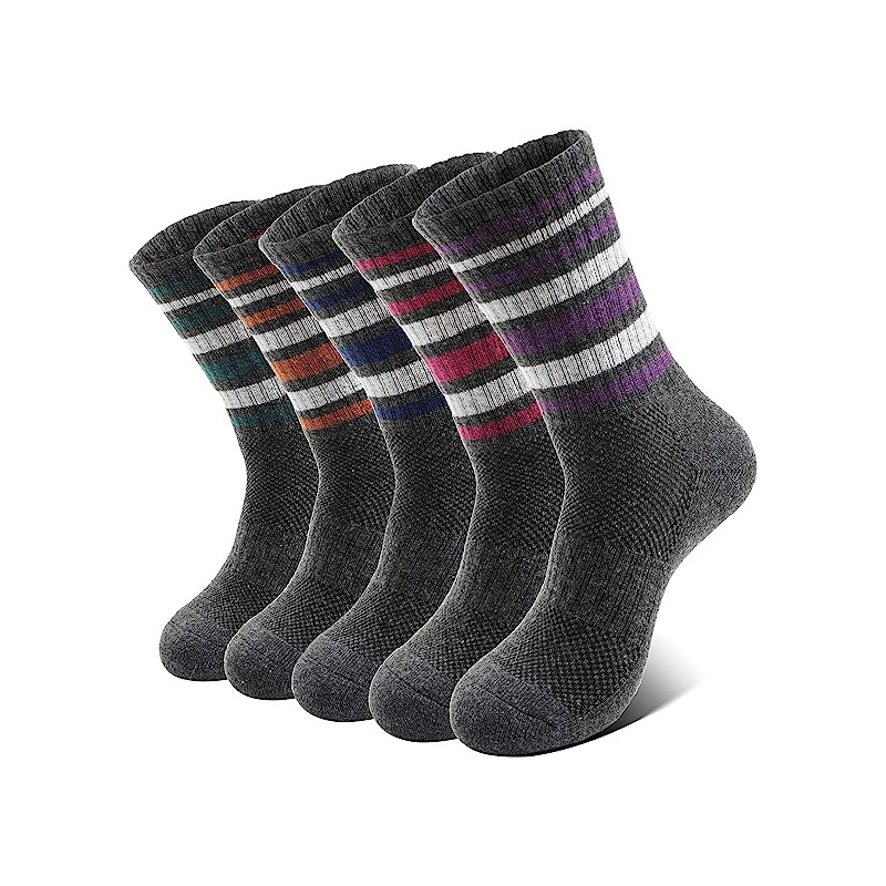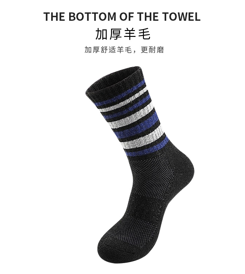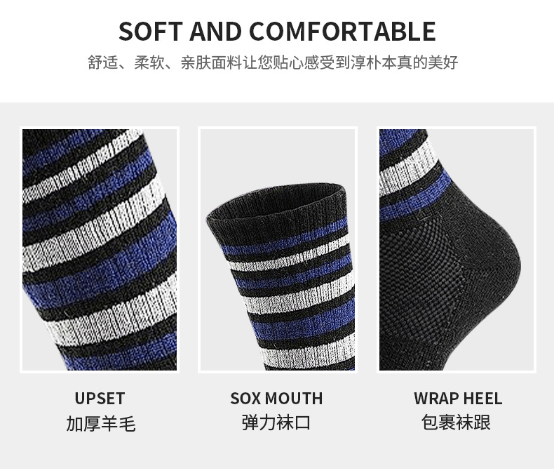 사용자 정의 메리노 울 하이킹 양말 여성의 따뜻한 겨울 따뜻한 부츠 작업 패드 양말 중간 배럴 스트라이프 하이킹 양말