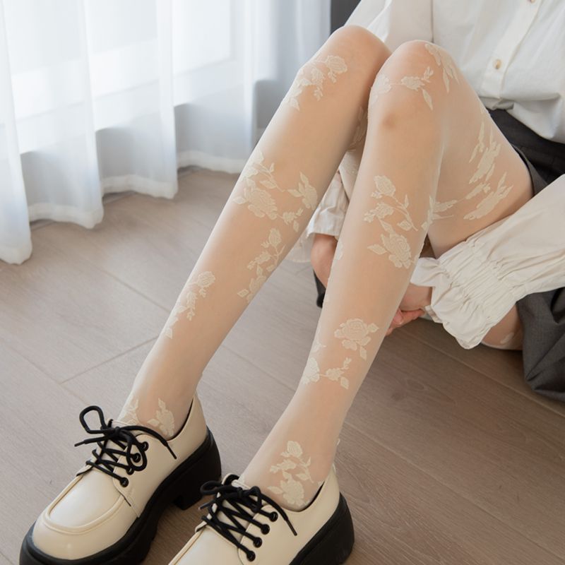 일본식 장미 섹시한 레이스 팬티 스타킹 여성용 여름 초박형 퓨어 화이트 팬티 스타킹 로리타스토어 가기