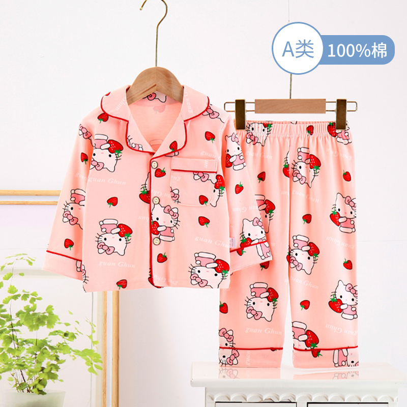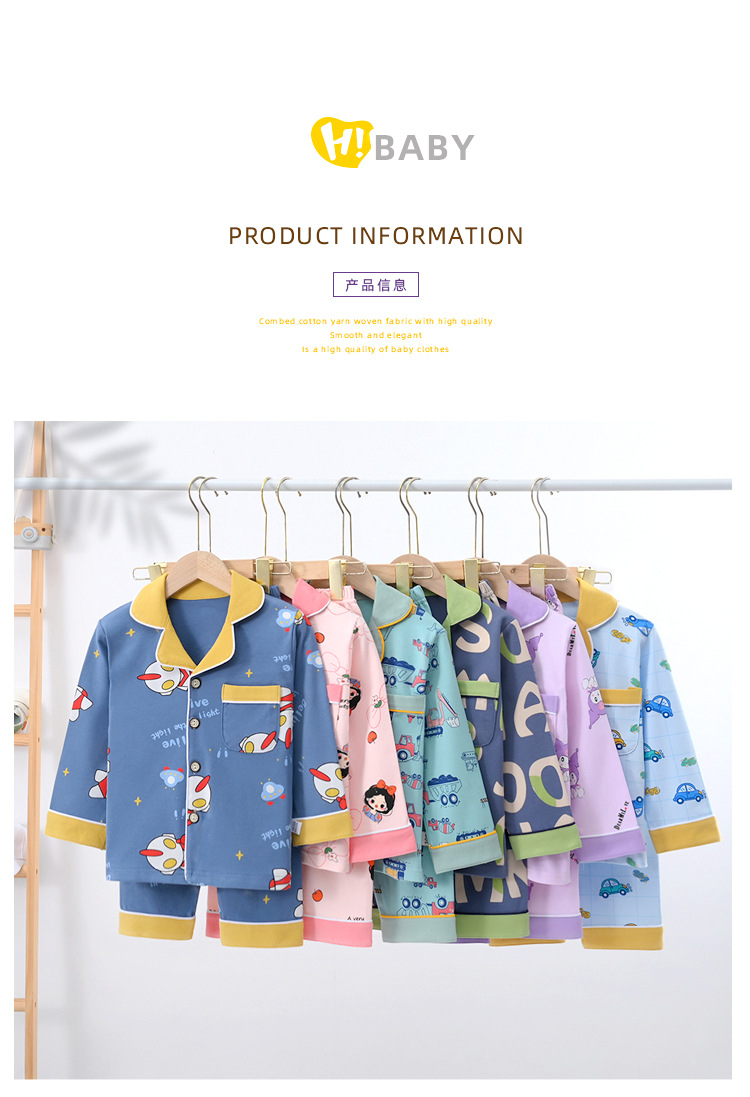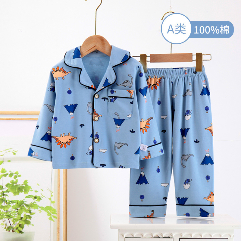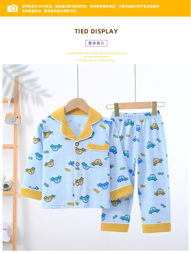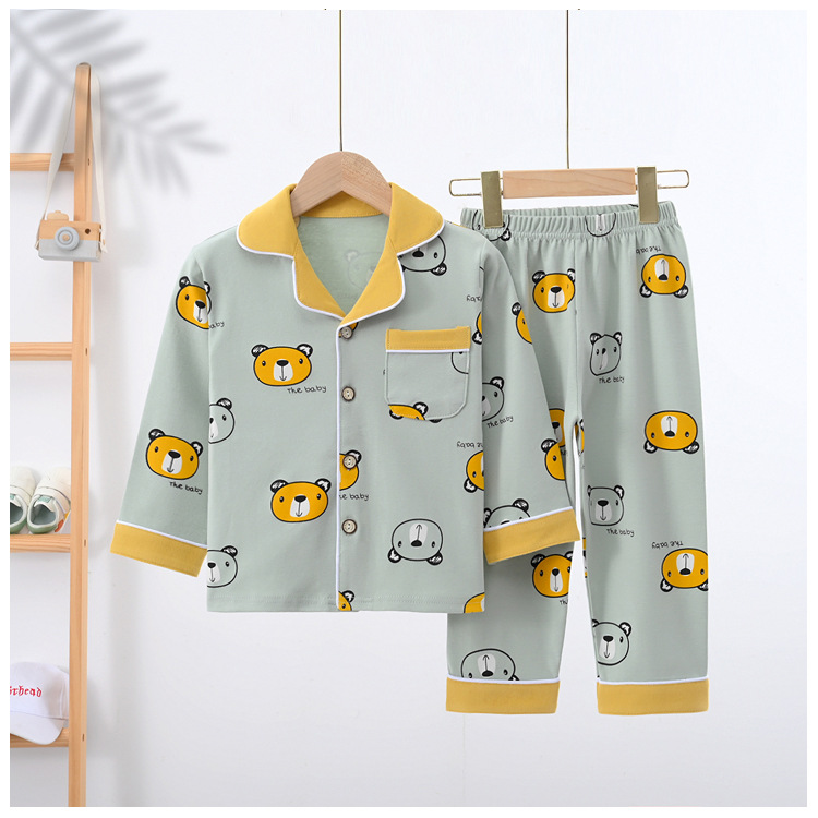 봄과 가을 면 어린이 잠옷 소년과 소녀 만화 가디건 가정 옷 세트 한국 옷깃 어린이 잠옷 세트스토어 가기