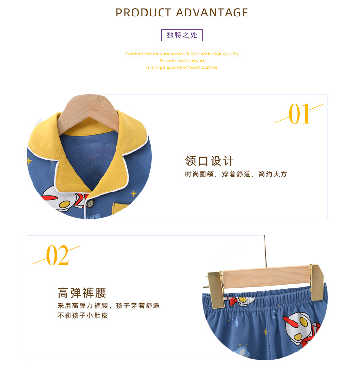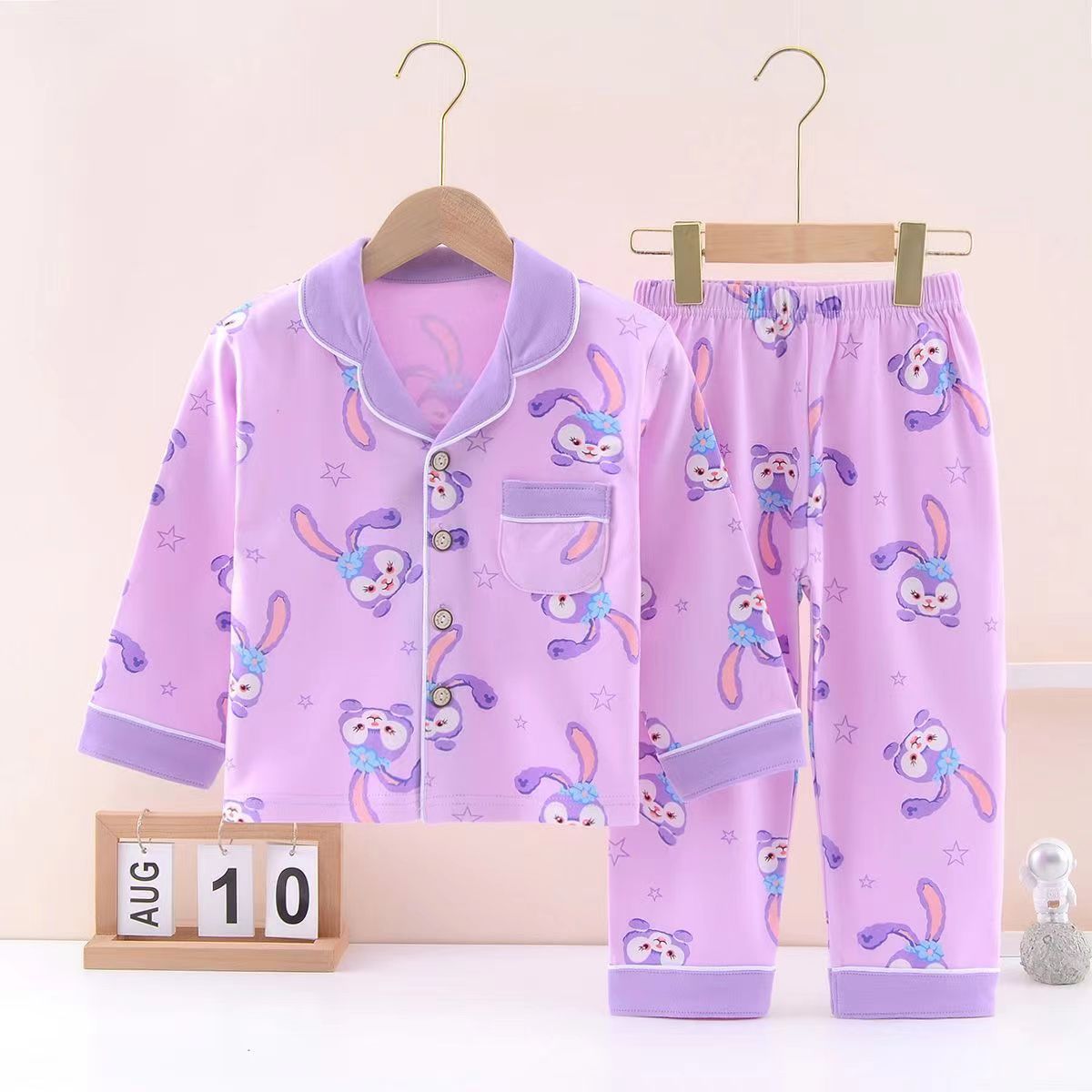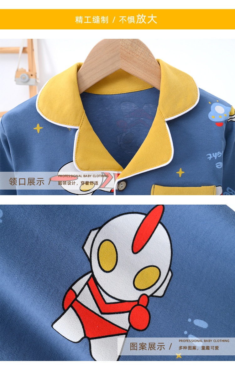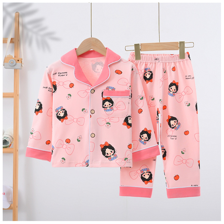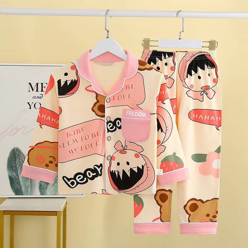 봄과 가을 면 어린이 잠옷 소년과 소녀 만화 가디건 가정 옷 세트 한국 옷깃 어린이 잠옷 세트스토어 가기