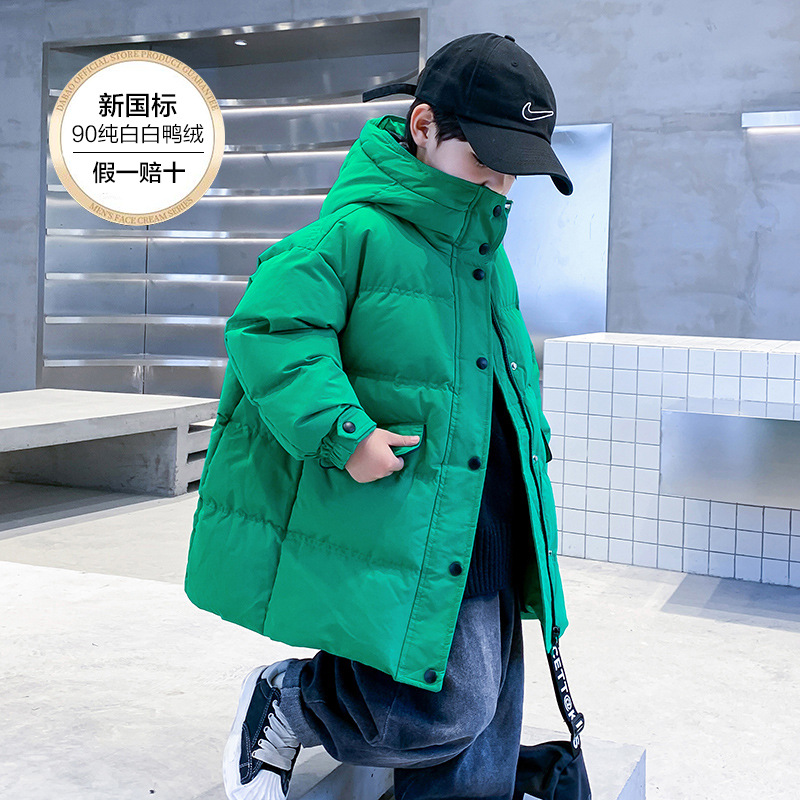 어린이용 중간 길이 녹색 흰색 오리털 다운 재킷 겨울 2025 신상 남아용 두꺼운 코트 중대형 어린이 의류스토어 가기