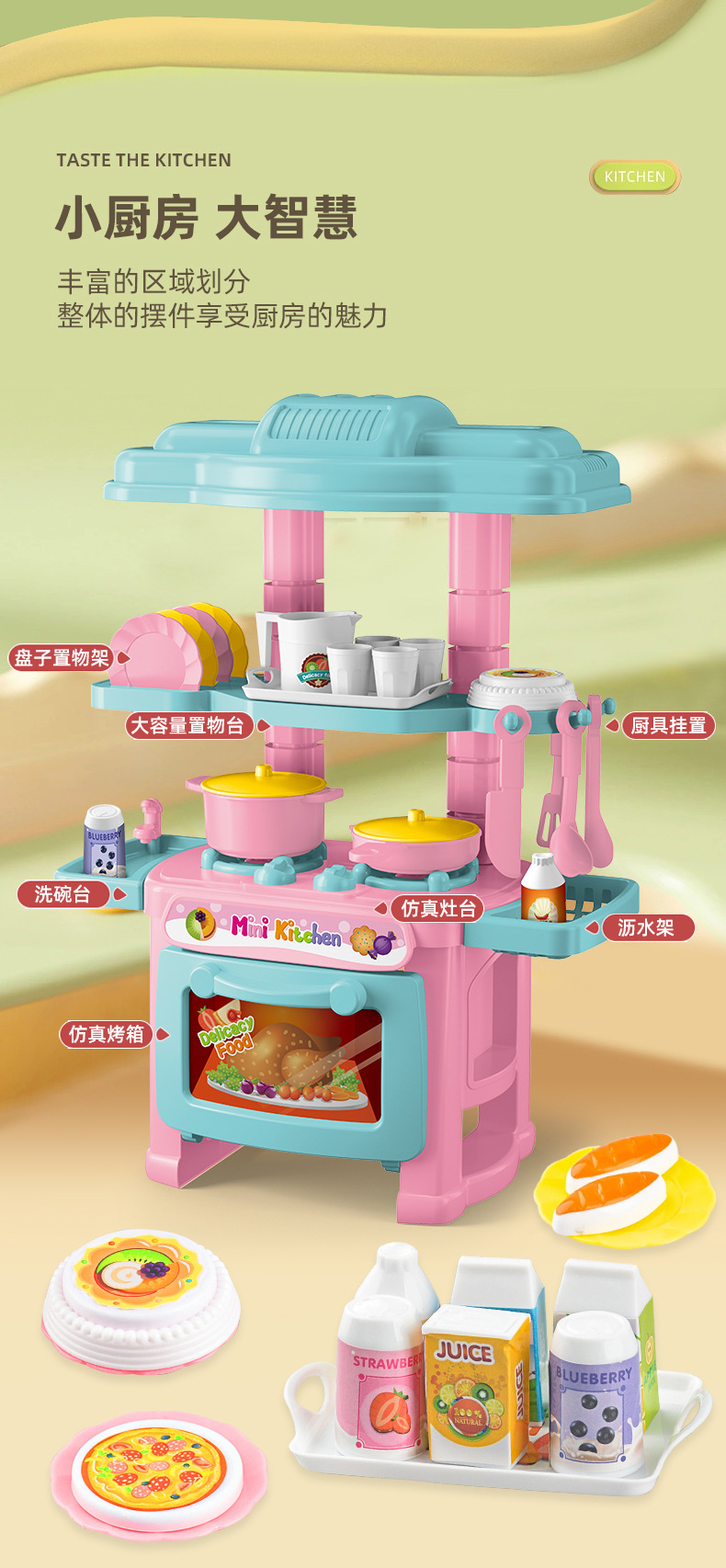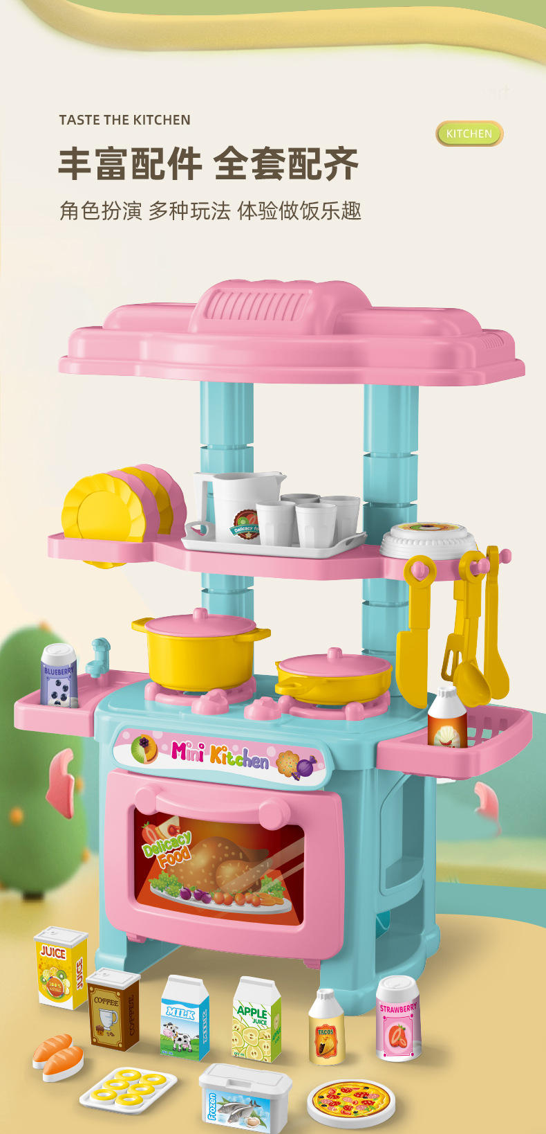 플레이 하우스 주방 장난감 세트 시뮬레이션 미니 주방 요리 식기 스토브 소녀 놀이 집 장난감 도매스토어 가기