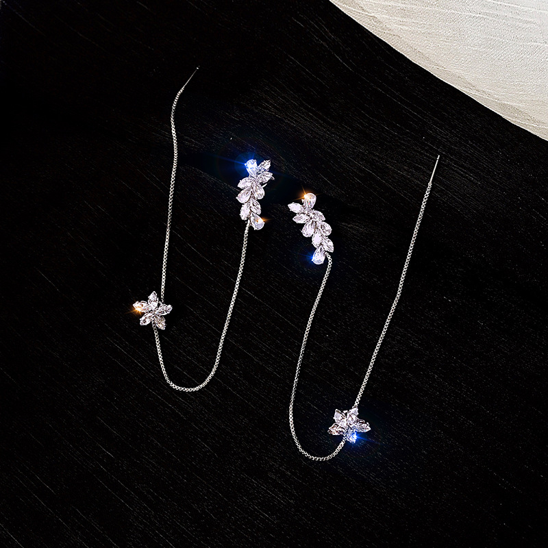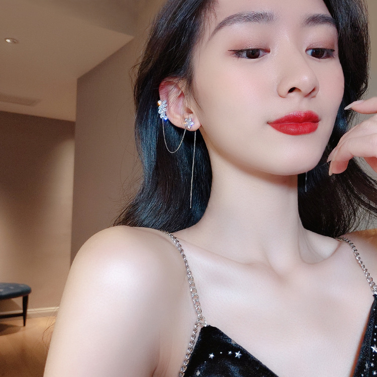 925 실버 바늘 지르콘 꽃 술 귀 뼈 클립 이어 스터드 이어 스터드 2023 새로운 패션 긴 귀걸이 여성스토어 가기