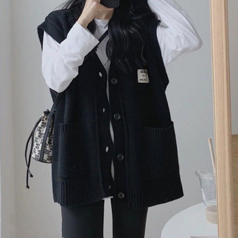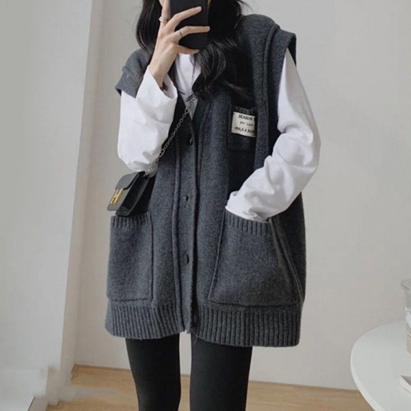 빅사이즈 여성용 니트 가디건 조끼, 2025년 가을 겨울 신상품, 레이어드 스웨터, 아우터 조끼스토어 가기
