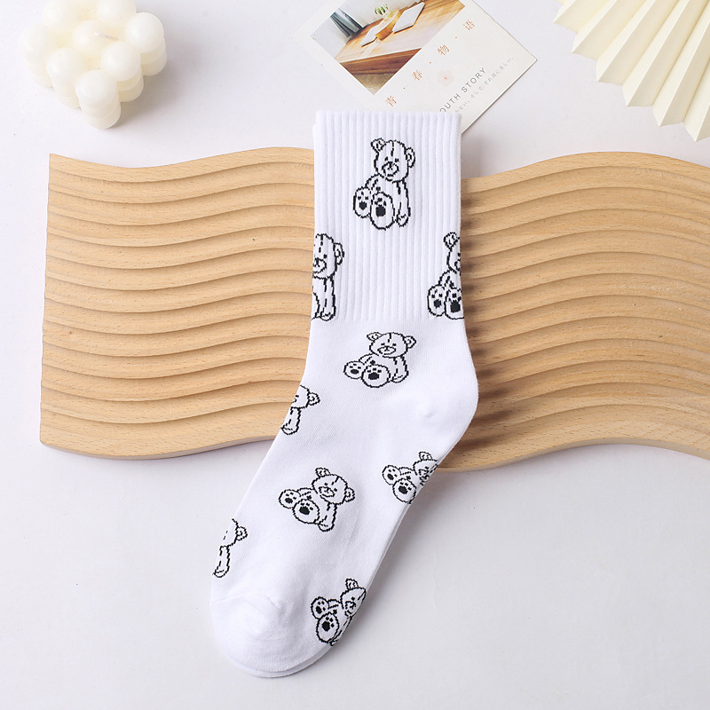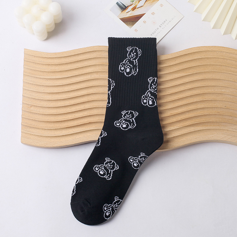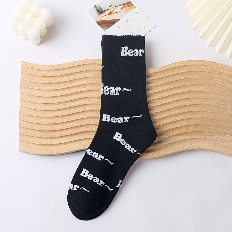 양말 남자와 여자 같은 스타일 높은 배럴 일본식 귀여운 패션 분위기 간단한 여름 새 곰 사랑 단색 높은 배럴스토어 가기