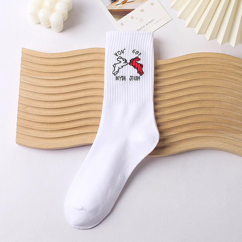 양말 남자와 여자 같은 스타일 높은 배럴 일본식 귀여운 패션 분위기 간단한 여름 새 곰 사랑 단색 높은 배럴