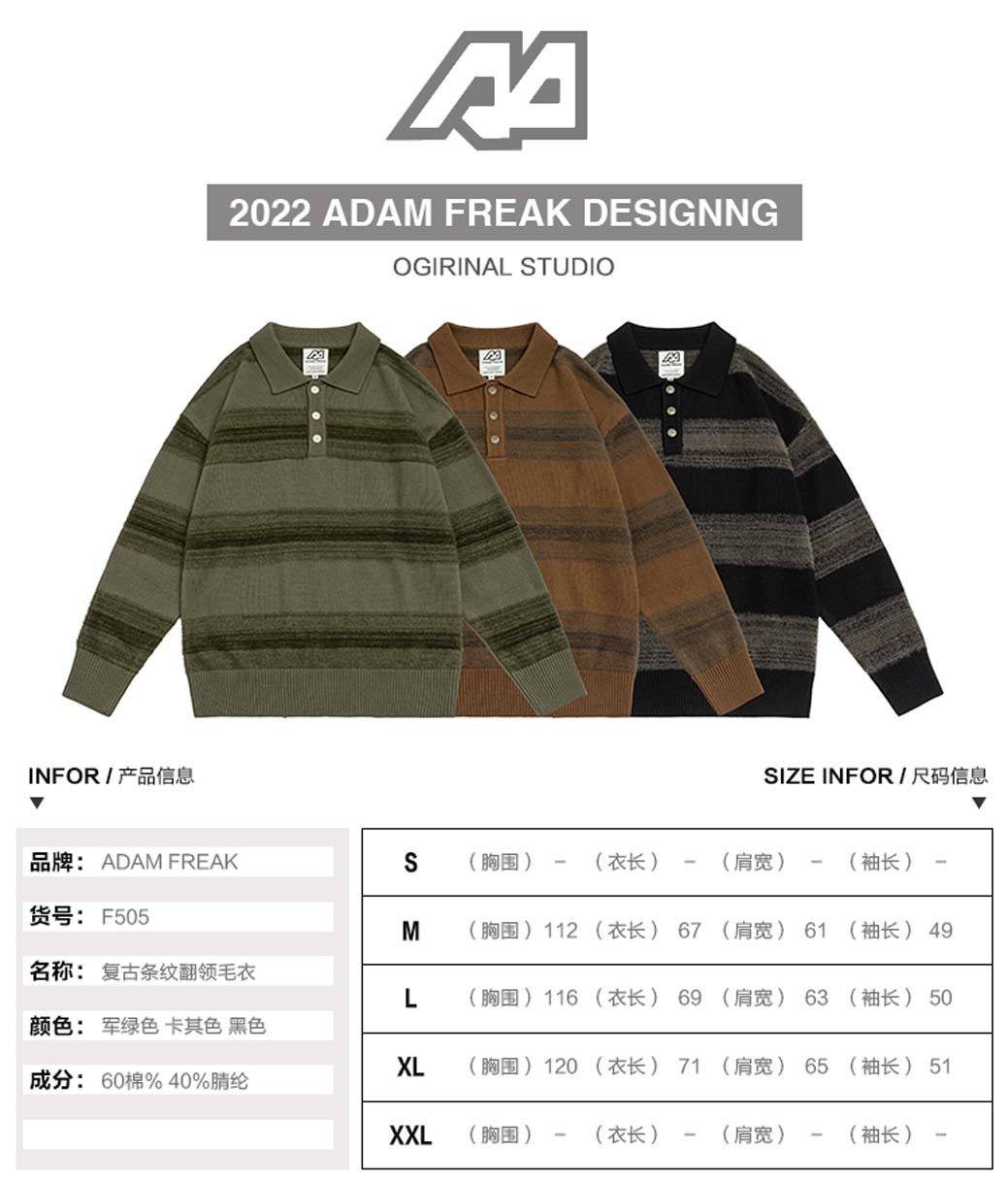 루IIENRS x ADAM FREAK 2023 일본 가을 패션 복고풍 스트라이프 카디건 스웨터 F505