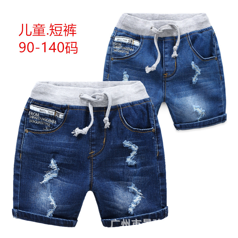 2023 새로운 여름 한국 스타일 어린이 탄성 허리 자수 가죽 표준 반바지 남아 트렌디 모든 매치 데님 바지