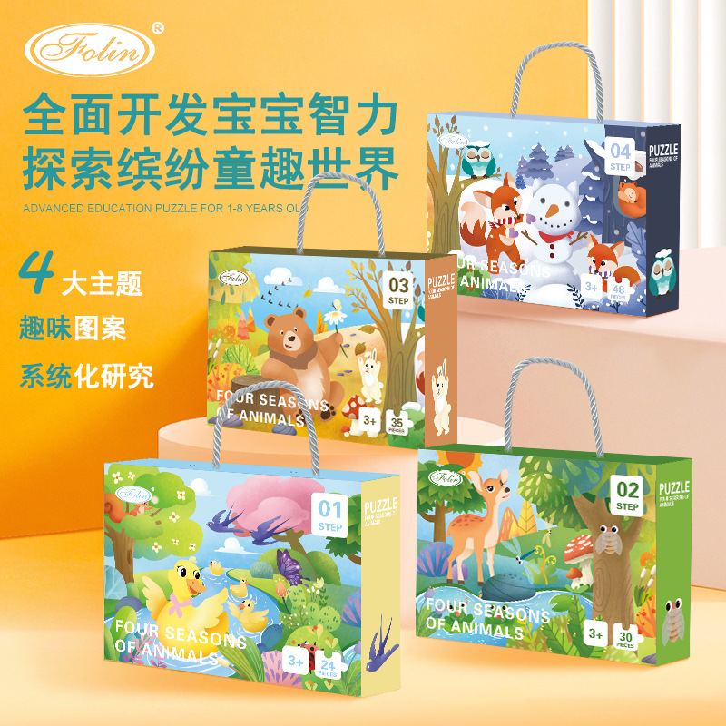 퍼즐 남녀 어린이 조립식 휴대용 선물 상자 유아 조기 교육 장난감 카드 3-6세 두꺼운 재질스토어 가기