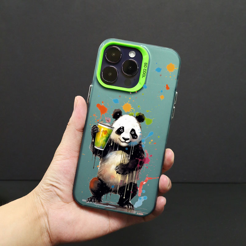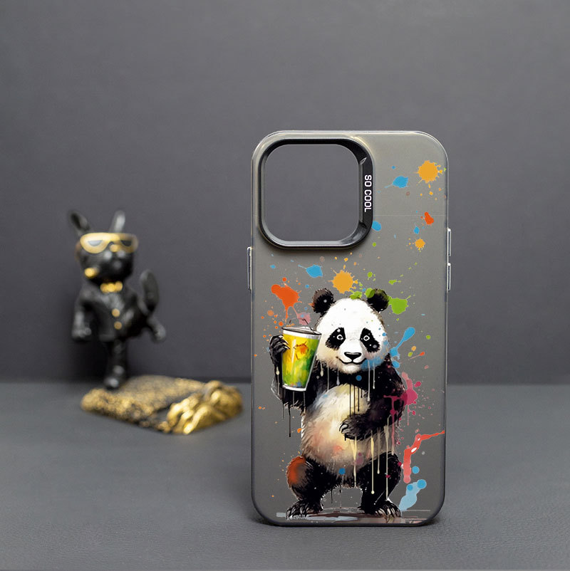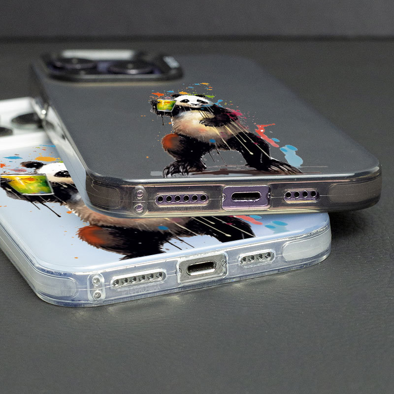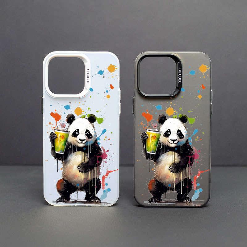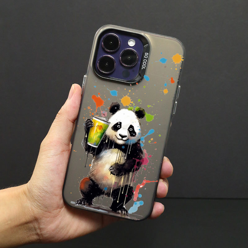 Apple 14/13/12Promax 낙하 방지 14 플러스 피부 느낌 젖빛 TPU 보호 커버에 적합한 유화 자이언트 팬더