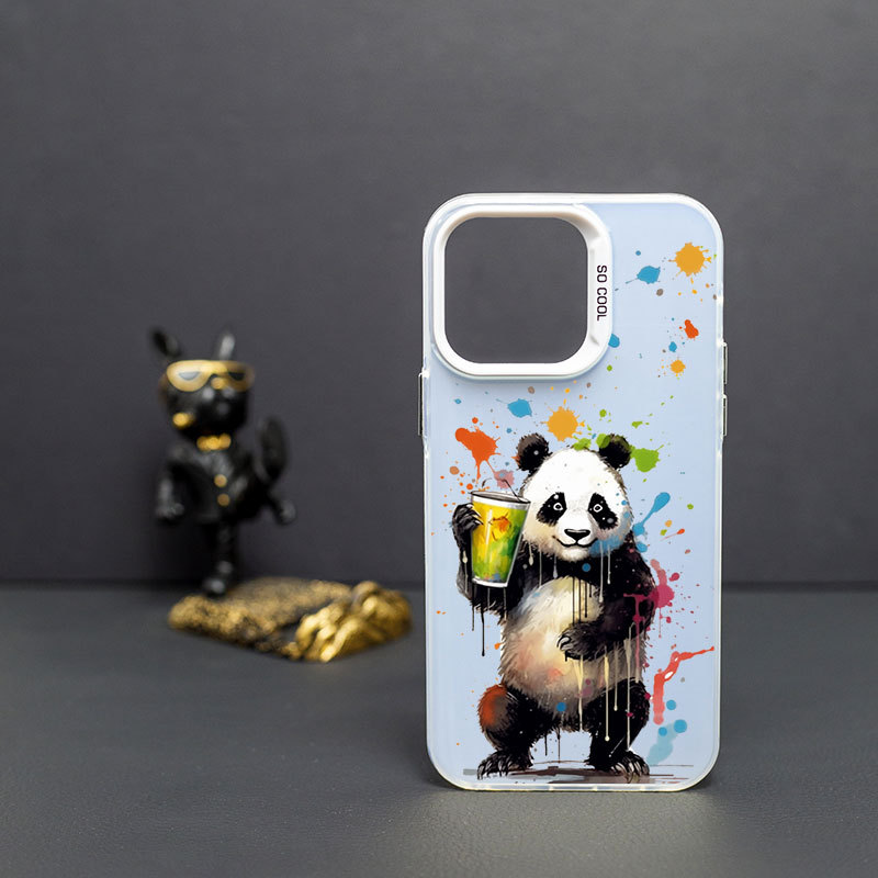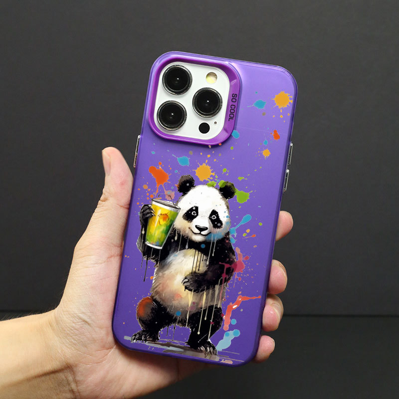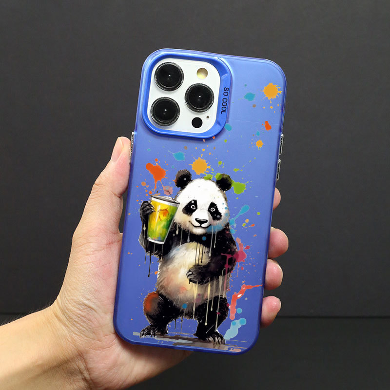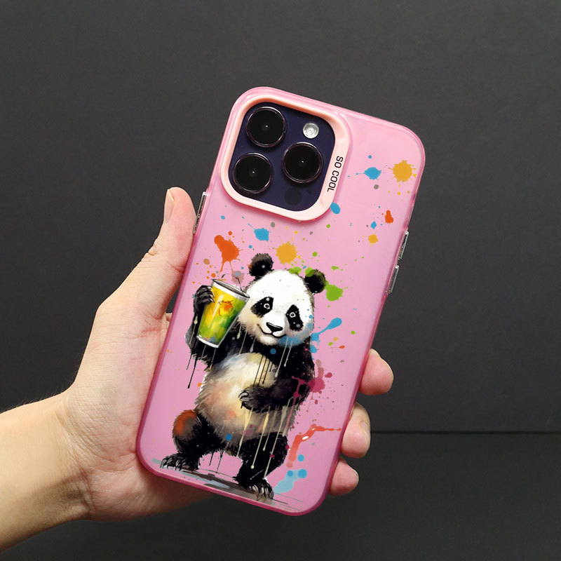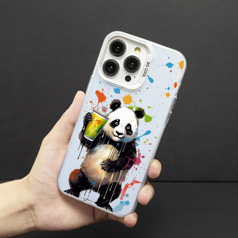 Apple 14/13/12Promax 낙하 방지 14 플러스 피부 느낌 젖빛 TPU 보호 커버에 적합한 유화 자이언트 팬더