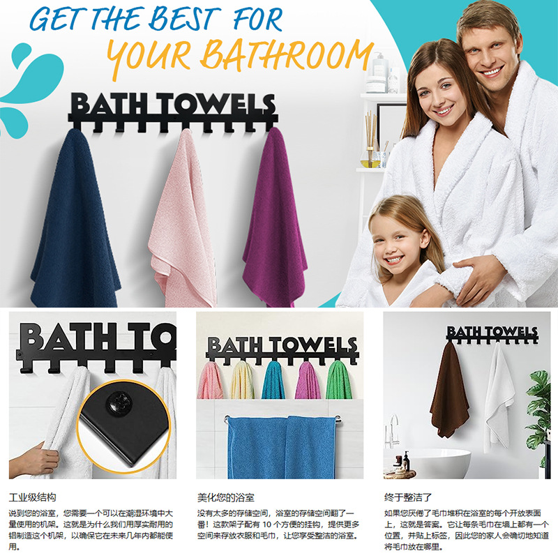 크로스 보더 단철 타월 후크 BATHIOWELS 크리에이티브 레이저 중공 문자 맞춤형 벽 장식 걸이스토어 가기