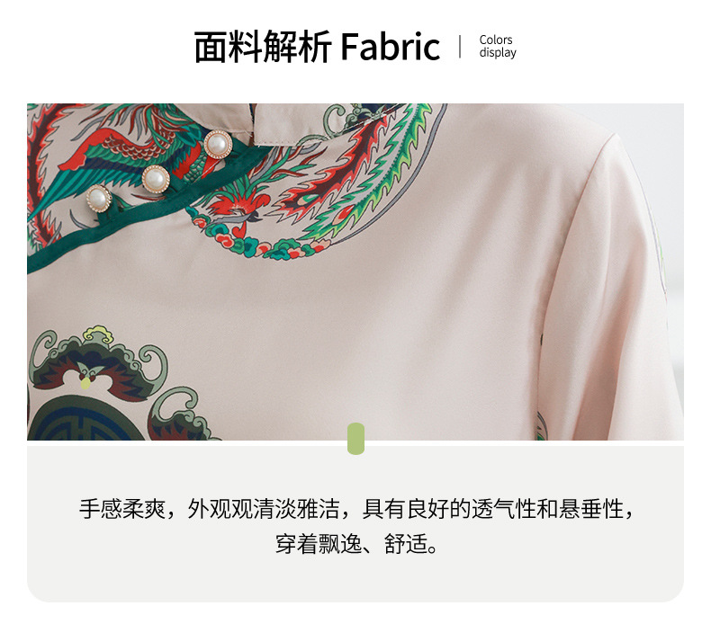 리얼 샷 2023 여름 새로운 복고풍 에스닉 스타일 실크 인쇄 진주 버클 경사 중국 스타일 여성용 림 탑