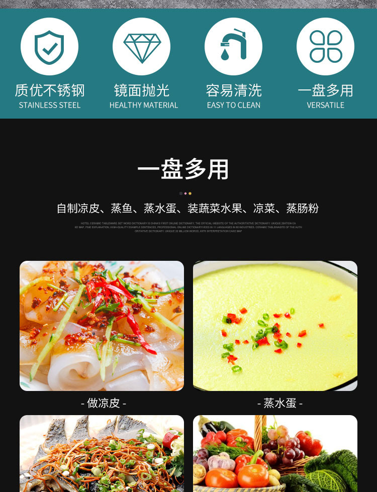 공장 도매 스테인레스 케이크 접시 가정용 시원한 피부 공 두꺼운 평평한 바닥 디스크 찐 밥 롤 멀티 사이즈 트레이