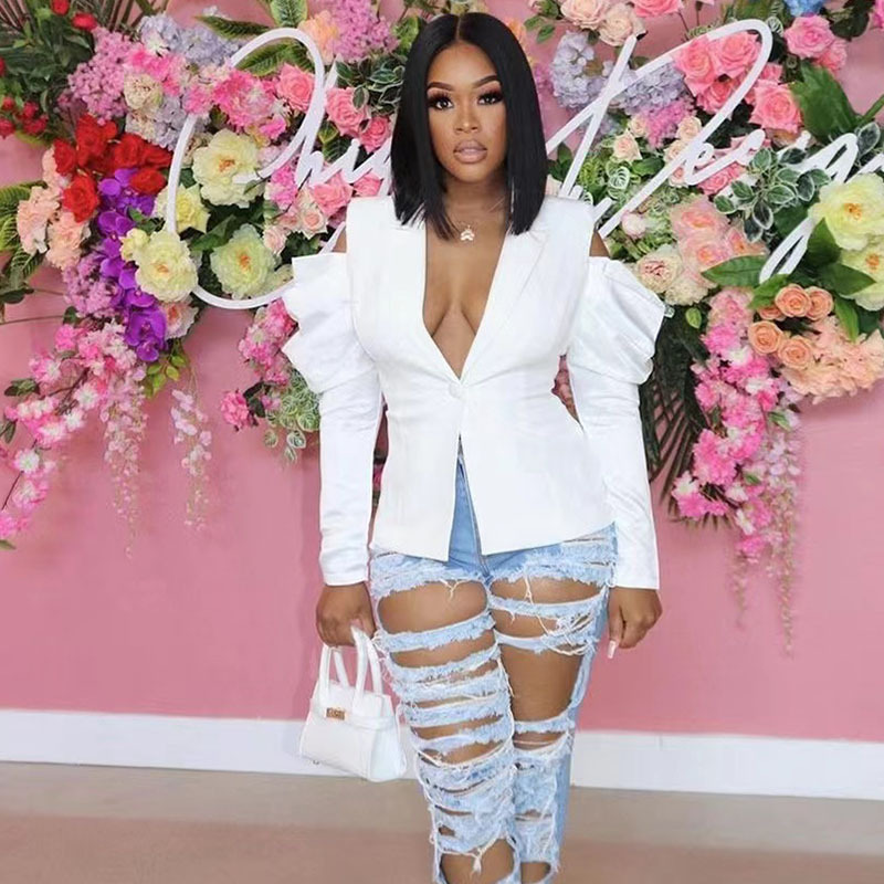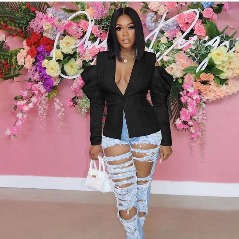 아프리카와 유럽에서 수입한 패션 오프숄더 긴팔 허리 조임 탑 정장 여성 정장 특가스토어 가기