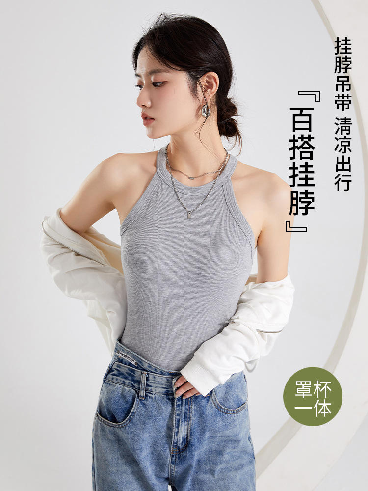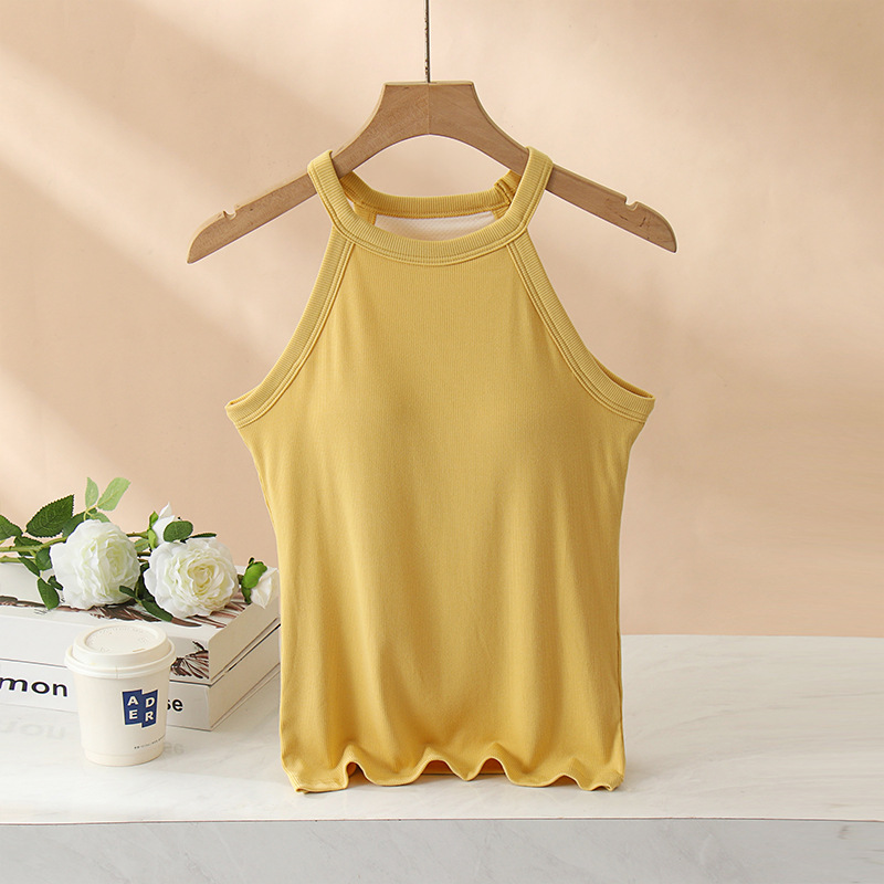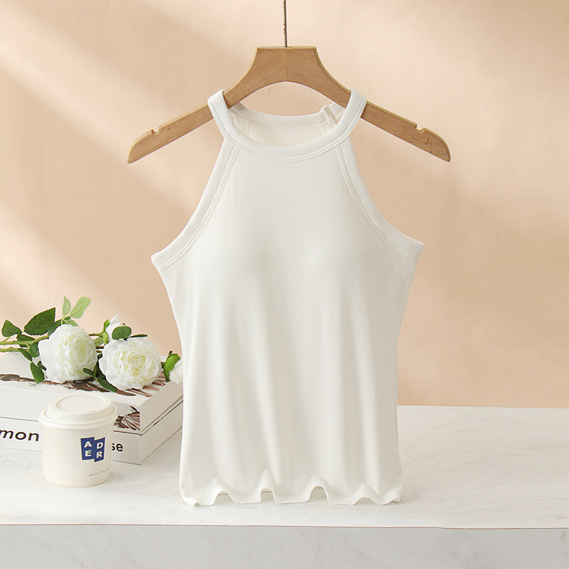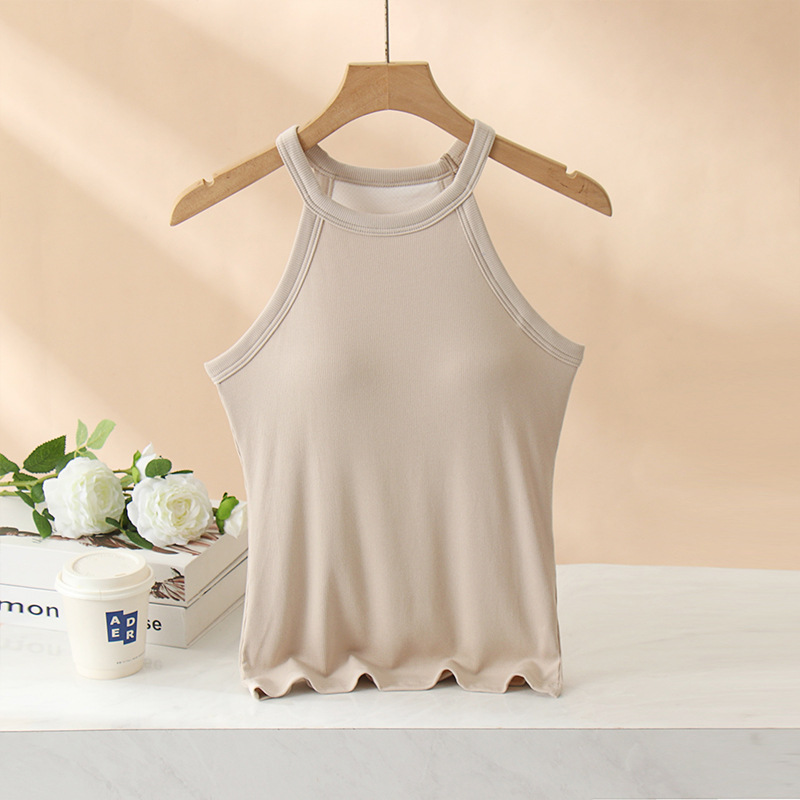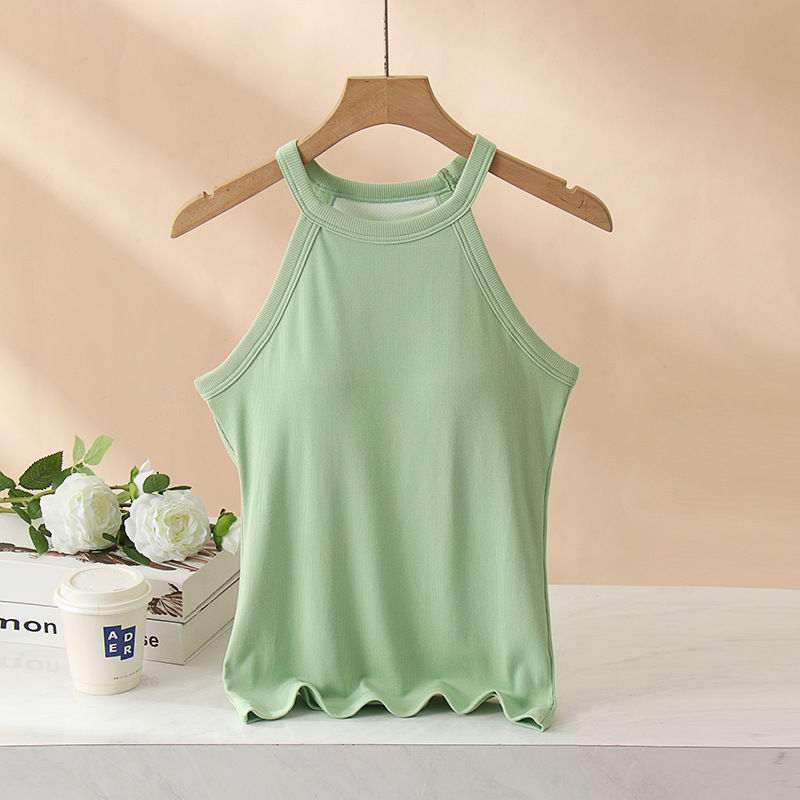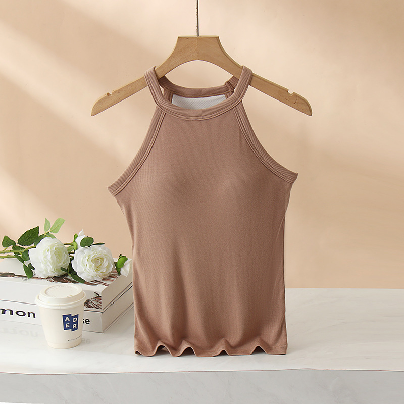 여성용 여름 태양 보호 의류 가슴 패드 걸이 목 조끼 베이스 컵 원피스 민소매 얇은 슬림 핏 탑 겉옷