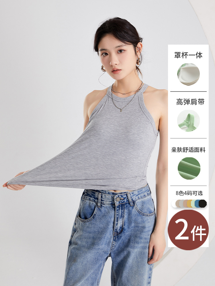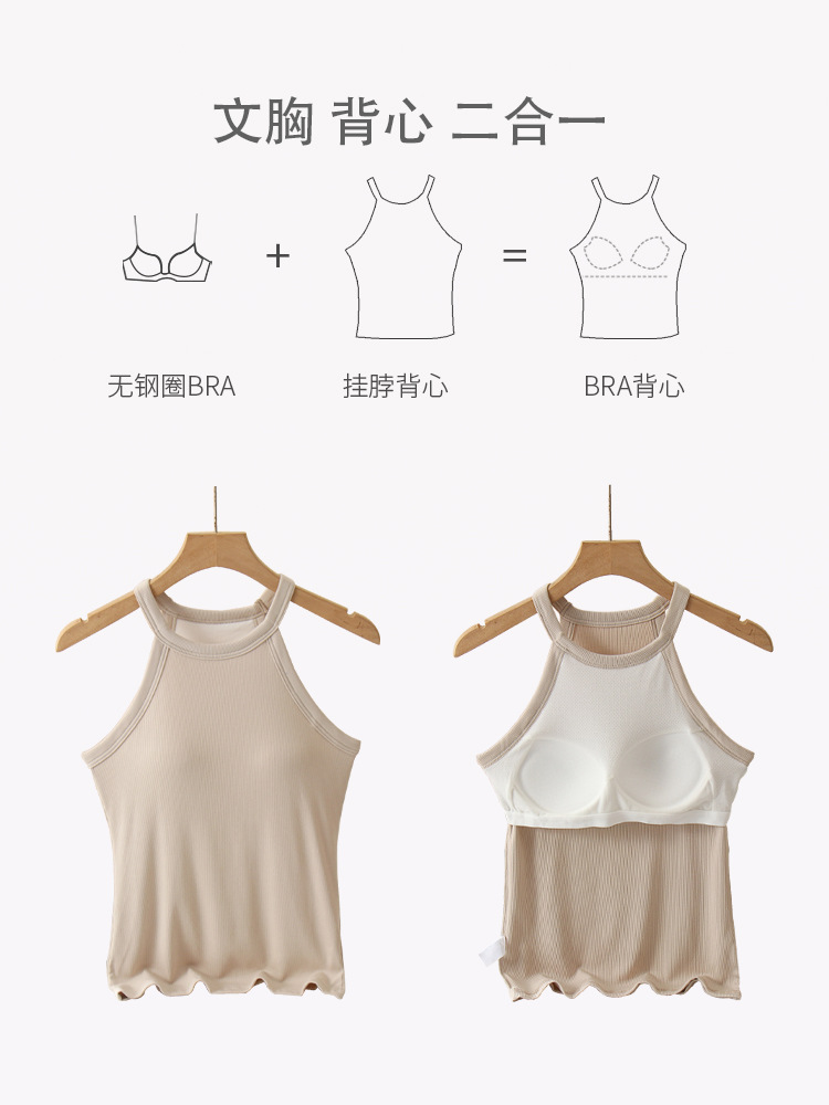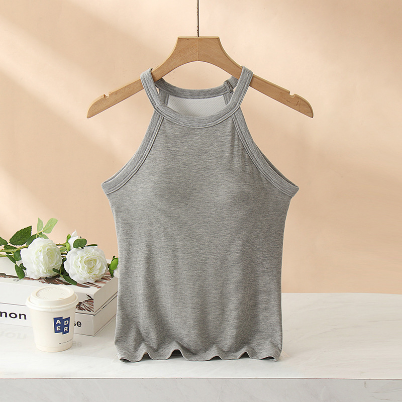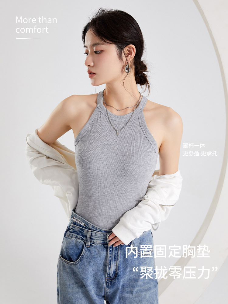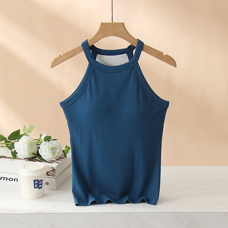 여성용 여름 태양 보호 의류 가슴 패드 걸이 목 조끼 베이스 컵 원피스 민소매 얇은 슬림 핏 탑 겉옷
