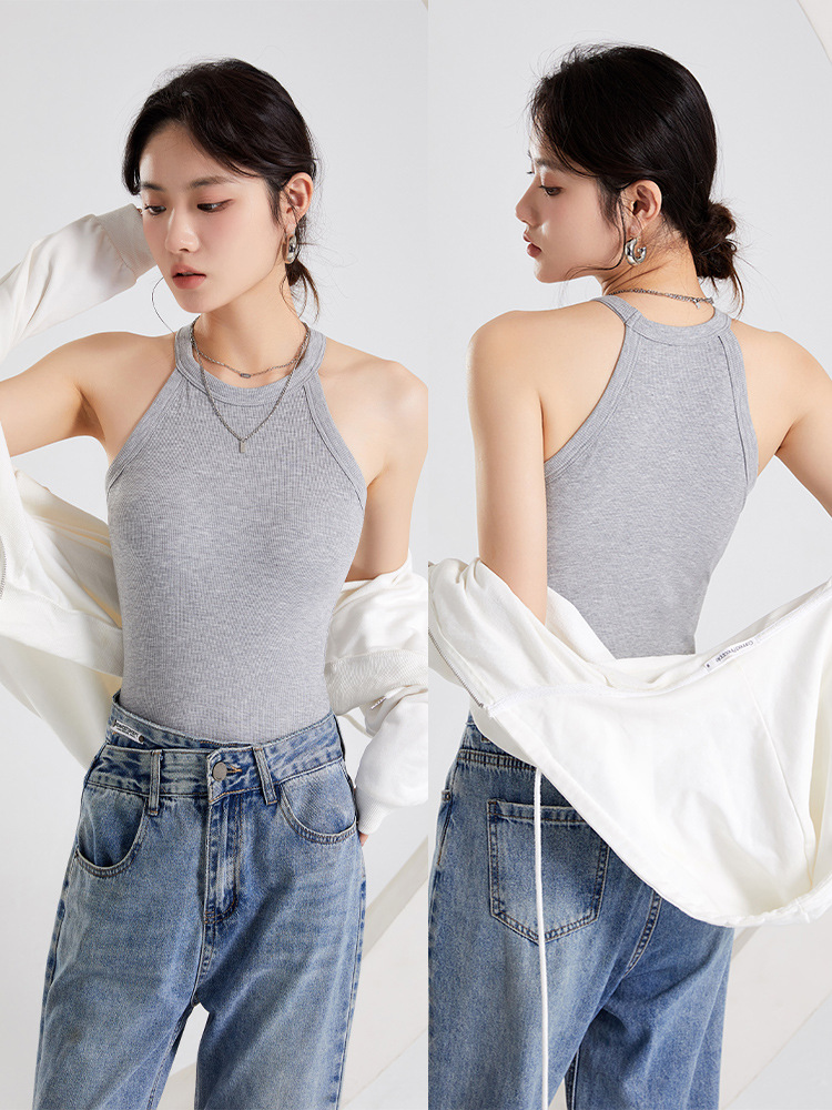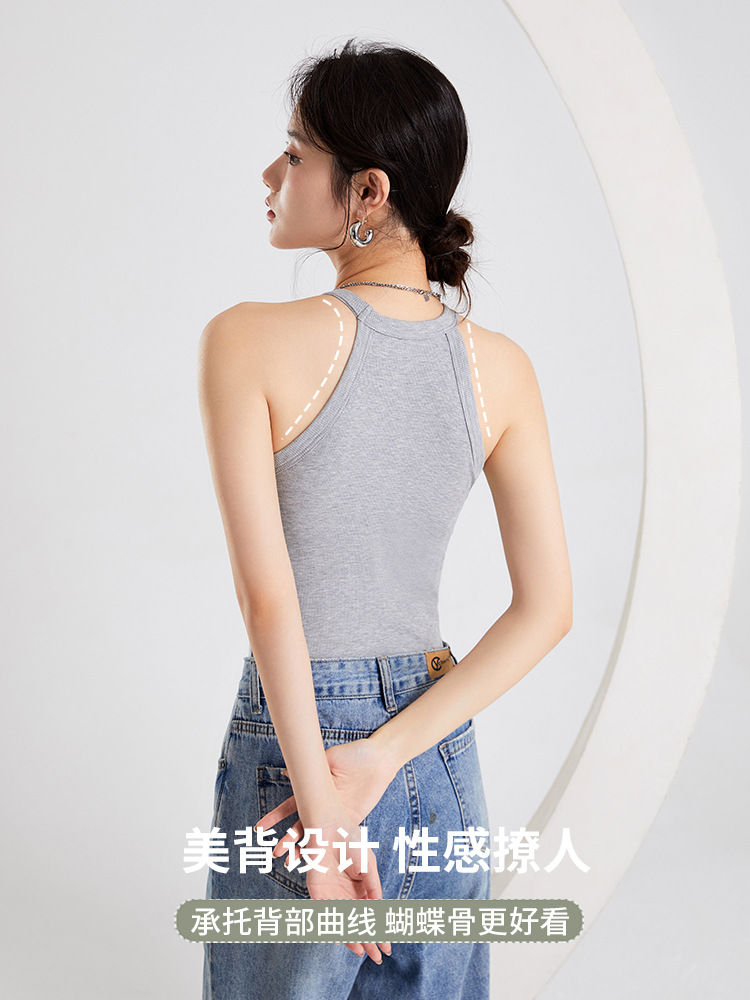 여성용 여름 태양 보호 의류 가슴 패드 걸이 목 조끼 베이스 컵 원피스 민소매 얇은 슬림 핏 탑 겉옷스토어 가기