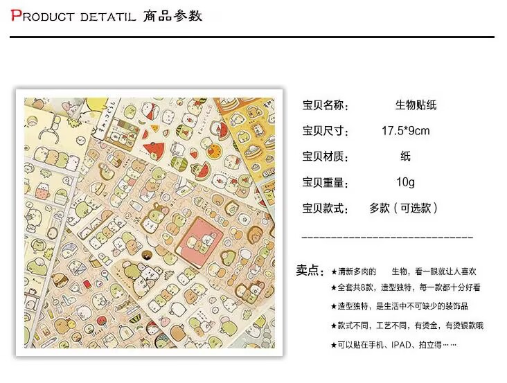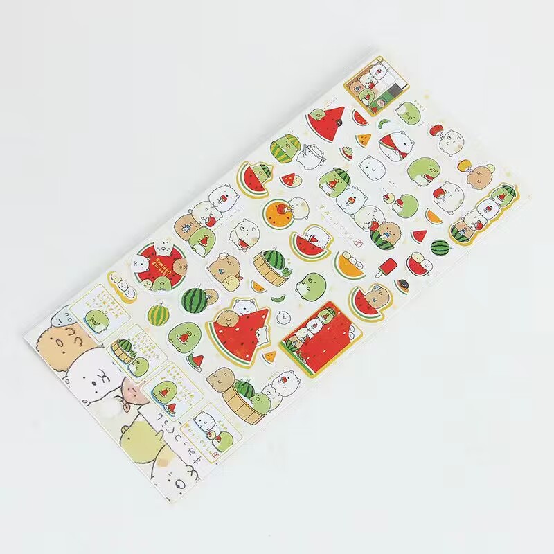일본어 코너 생물학적 한국 문구 핸드북 일기 장식 브론징 만화 동물 수박 종이 스티커스토어 가기