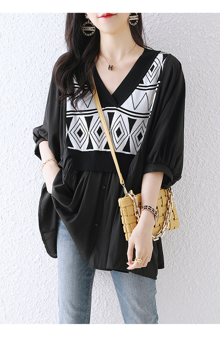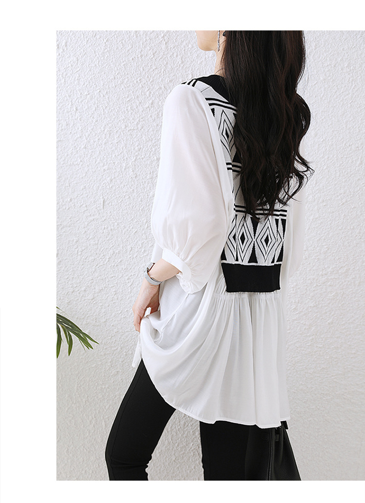 가을 일본과 한국의 새로운 배꼽 덮개 쉬폰 셔츠 여성의 플러스 사이즈 봄과 가을 바닥 탑 우아한 나이 감소 셔츠