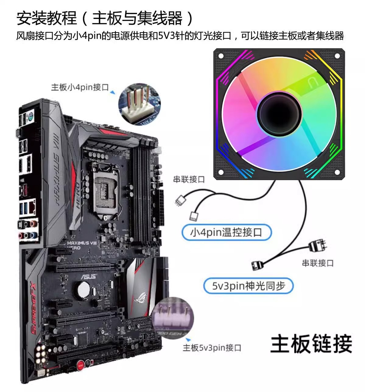 프리즘 4세대 7pro 냉각 팬 argb 신광 동기화 5V3 핀 컨트롤러 4s6 컴퓨터 섀시 라디에이터
