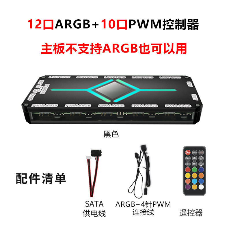• 허브 블랙 12 포트 ARGB 10 포트 PWM 컨트롤러 원격 제어