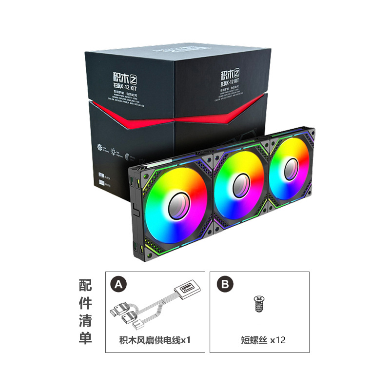 • 빌딩 블록 3 팬 블랙 앞으로 바람 [ARGB PWM 온도 제어]]