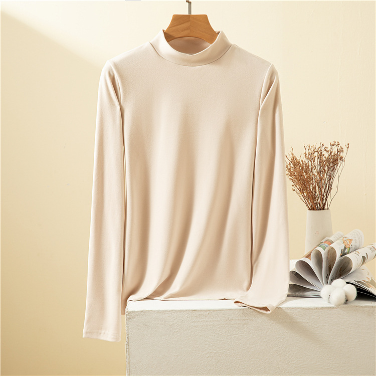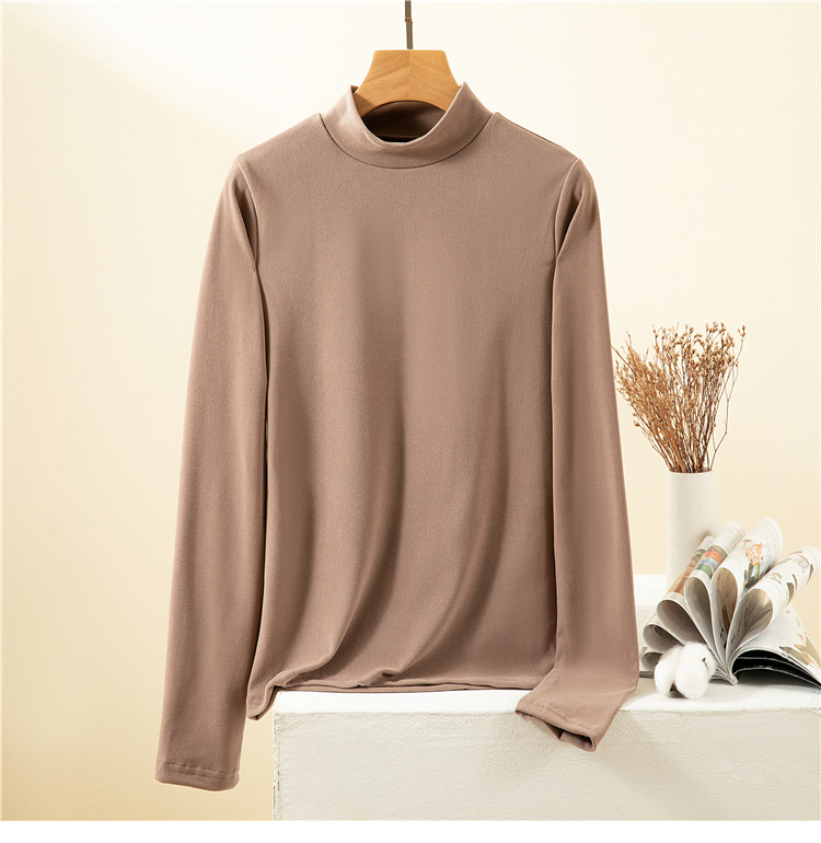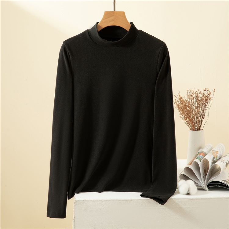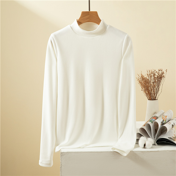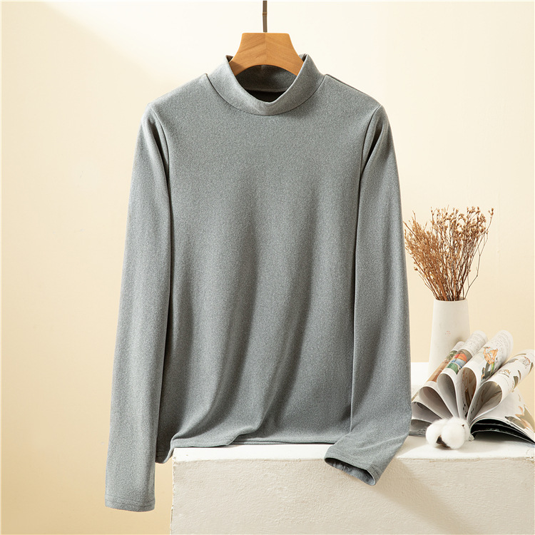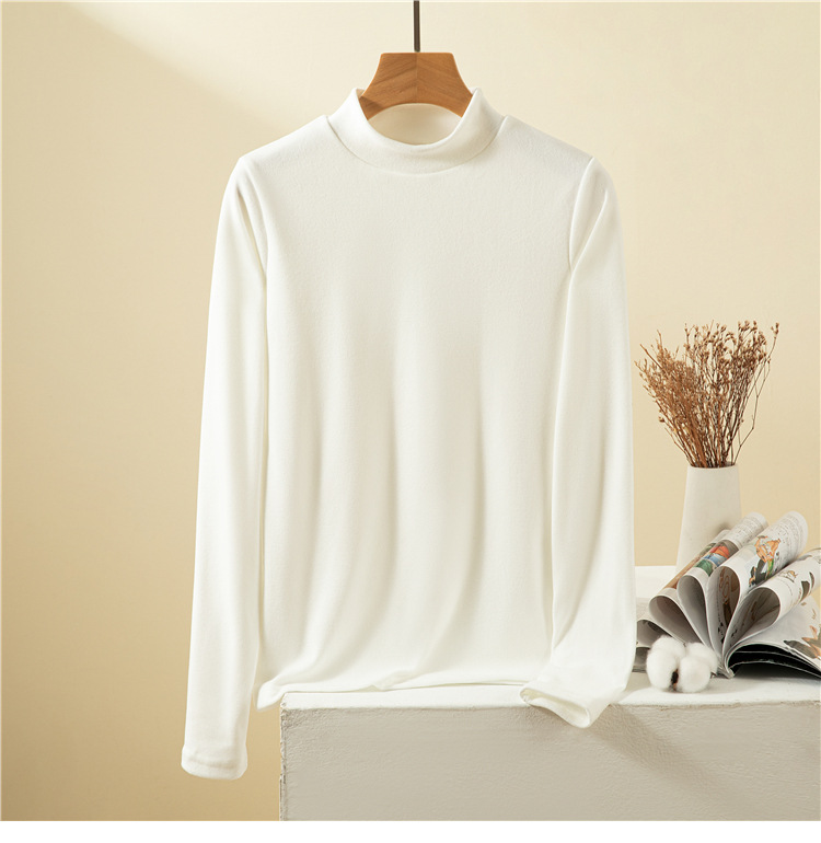 남녀공용 하프 터틀넥 독일 벨벳 밑단 셔츠, 여성용 긴팔 티셔츠, 양면 벨벳, 다용도, 따뜻함, 여성용 두꺼운 이너웨어
