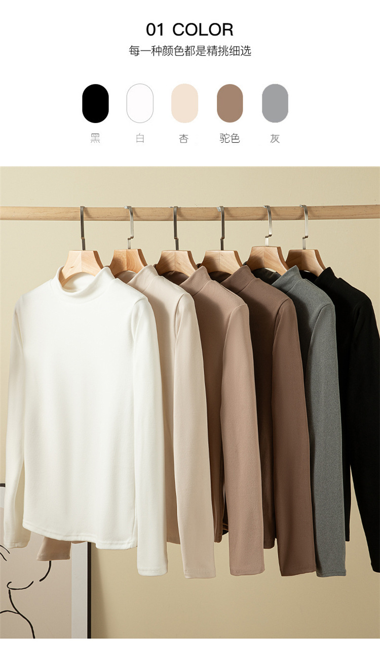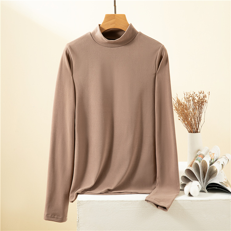 남녀공용 하프 터틀넥 독일 벨벳 밑단 셔츠, 여성용 긴팔 티셔츠, 양면 벨벳, 다용도, 따뜻함, 여성용 두꺼운 이너웨어스토어 가기