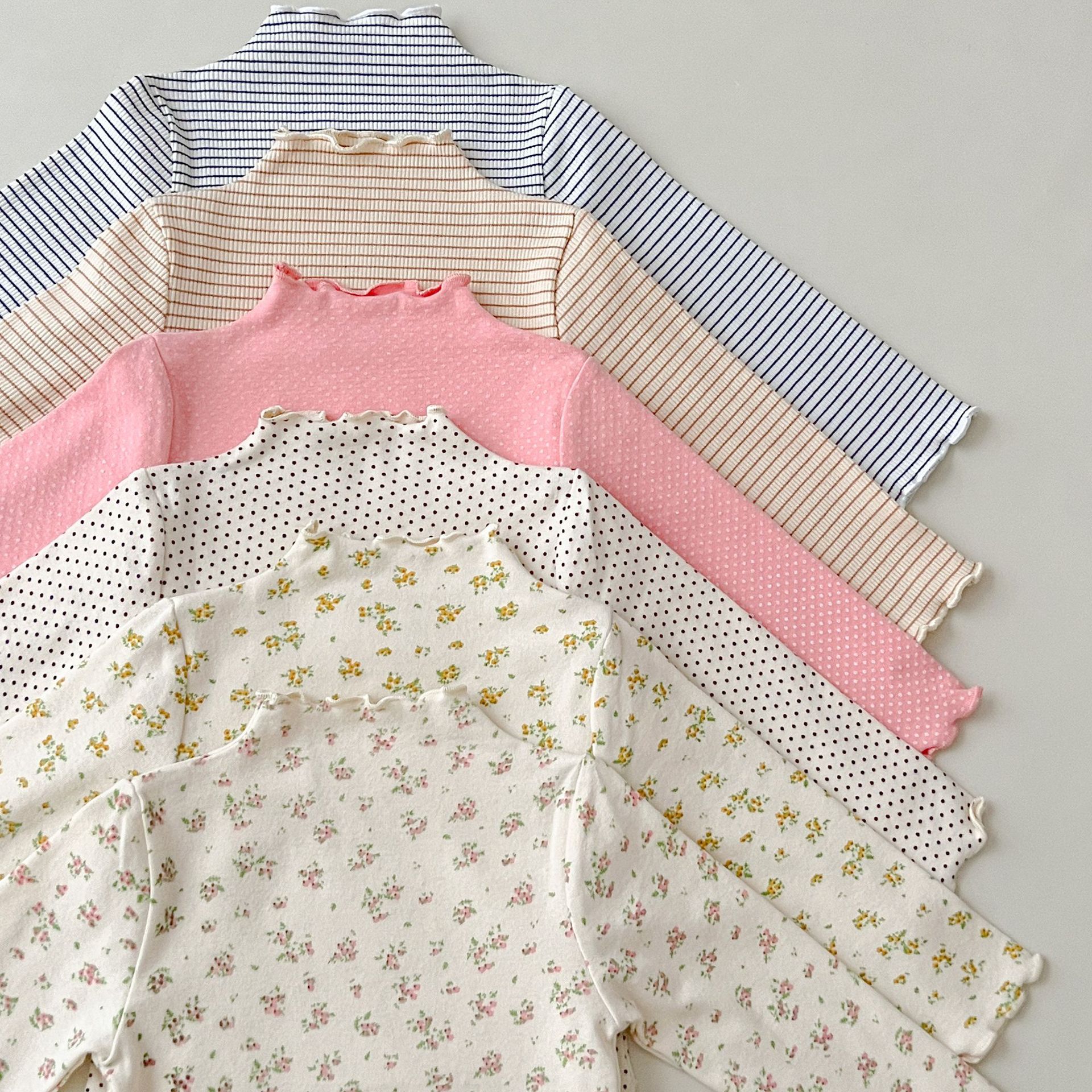 가을 새로운 여아 베이스 셔츠 아기 소녀의 작은 꽃 줄무늬 물방울 무늬 높은 칼라 모든 경기 아동복 주니어 탑스토어 가기