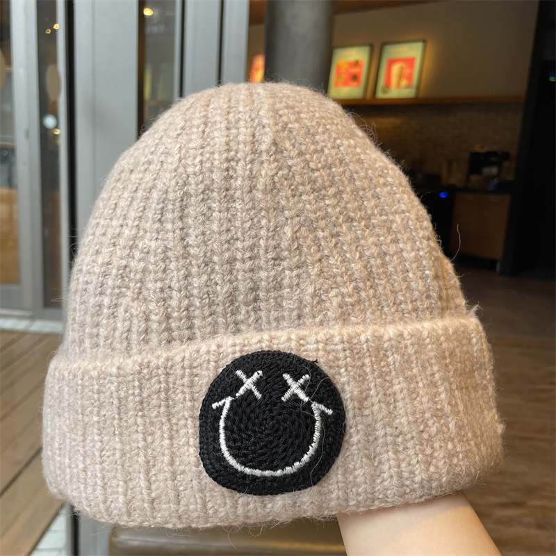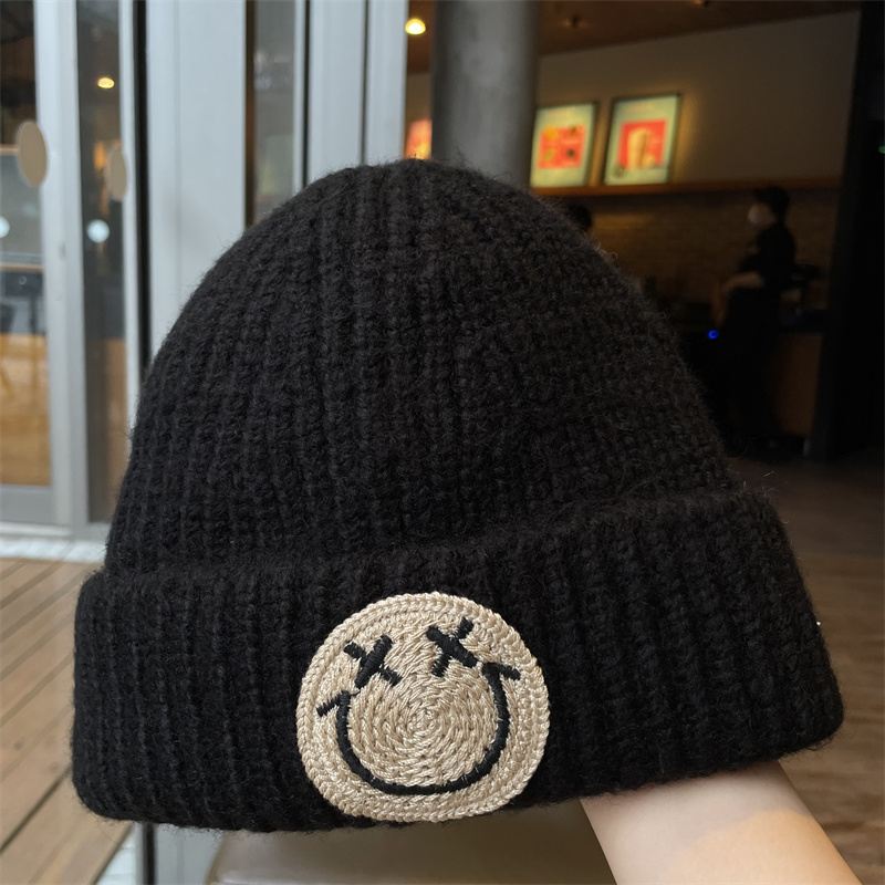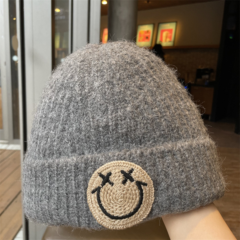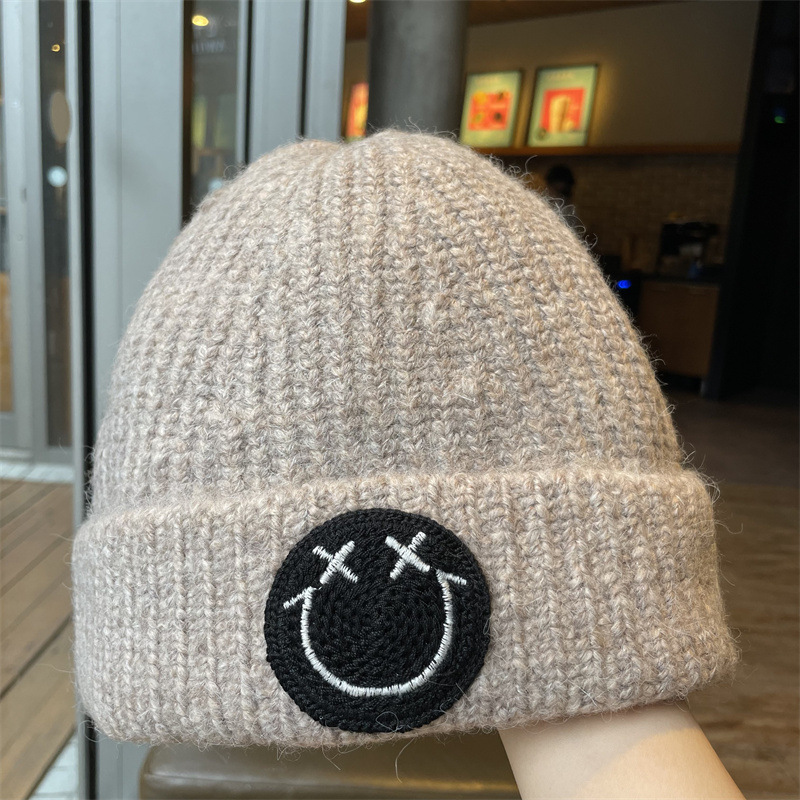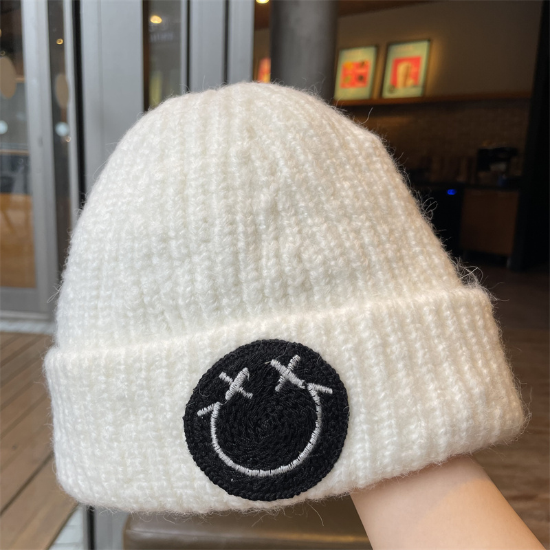 새로운 스마일 울 모자 여성용 겨울 모든 경기 따뜻한 한국 스타일 모든 매치 트렌디 한 니트 모자 가을과 겨울을 위한 콜드 햇스토어 가기