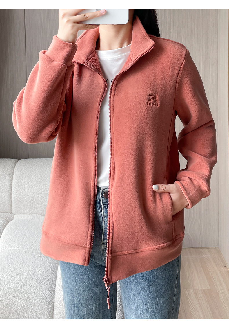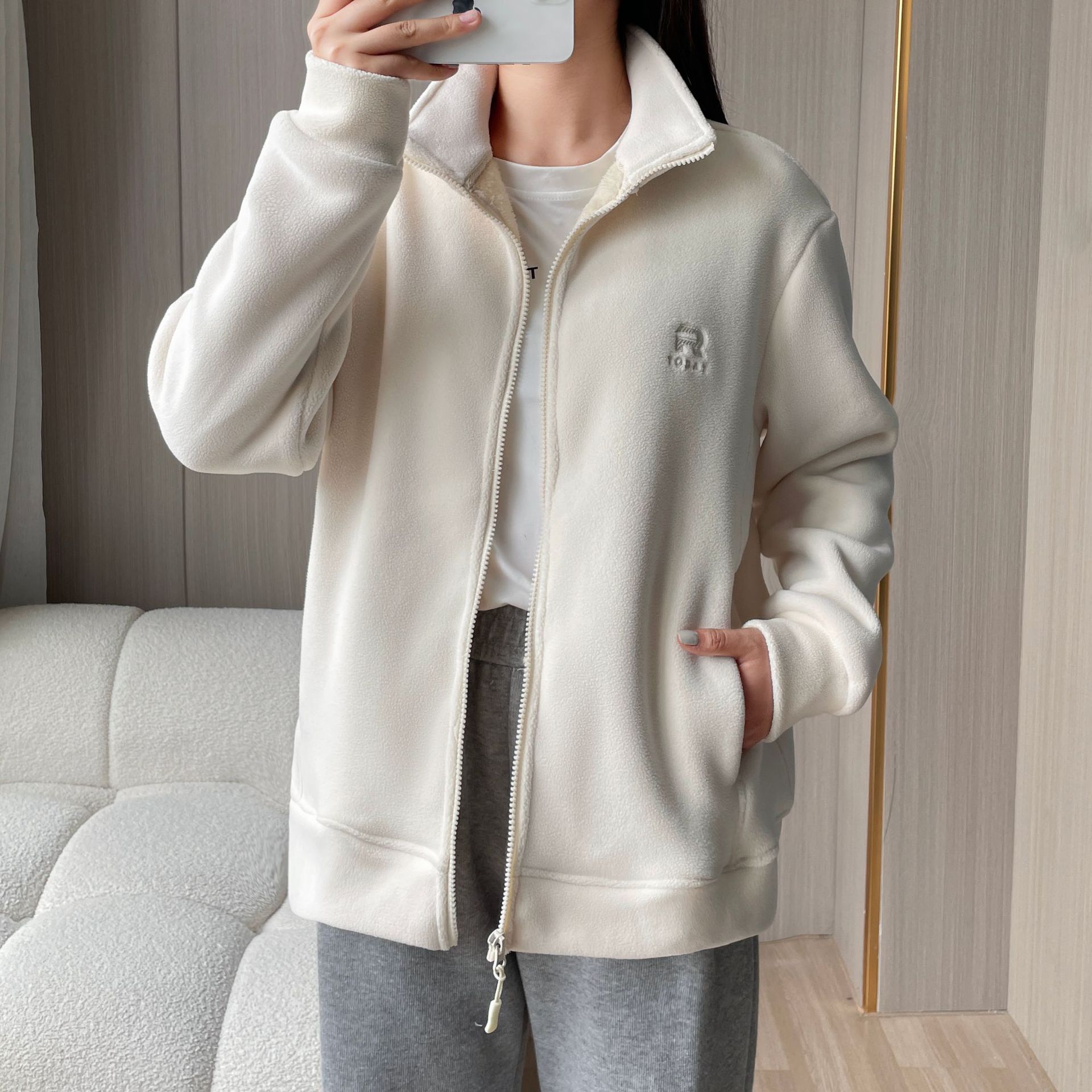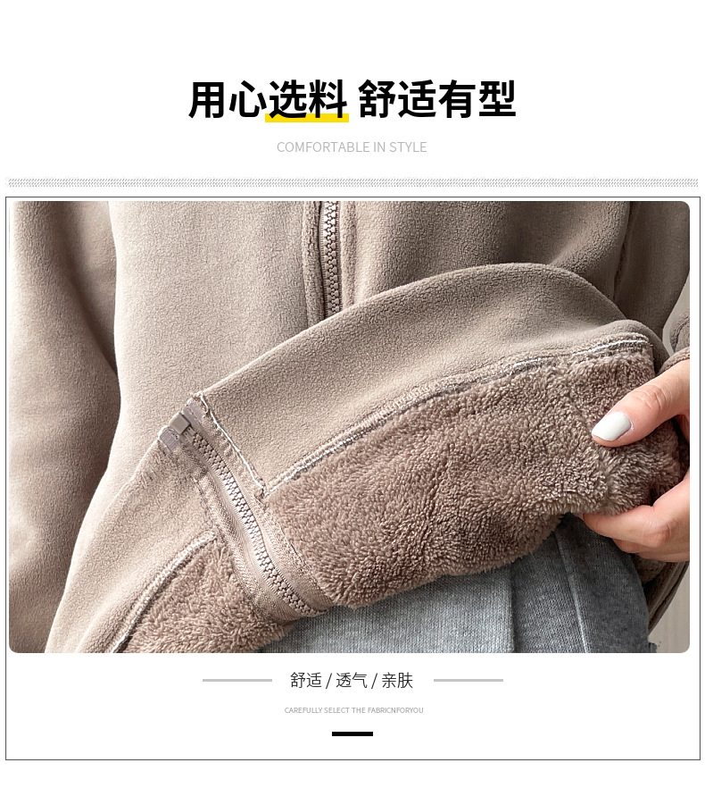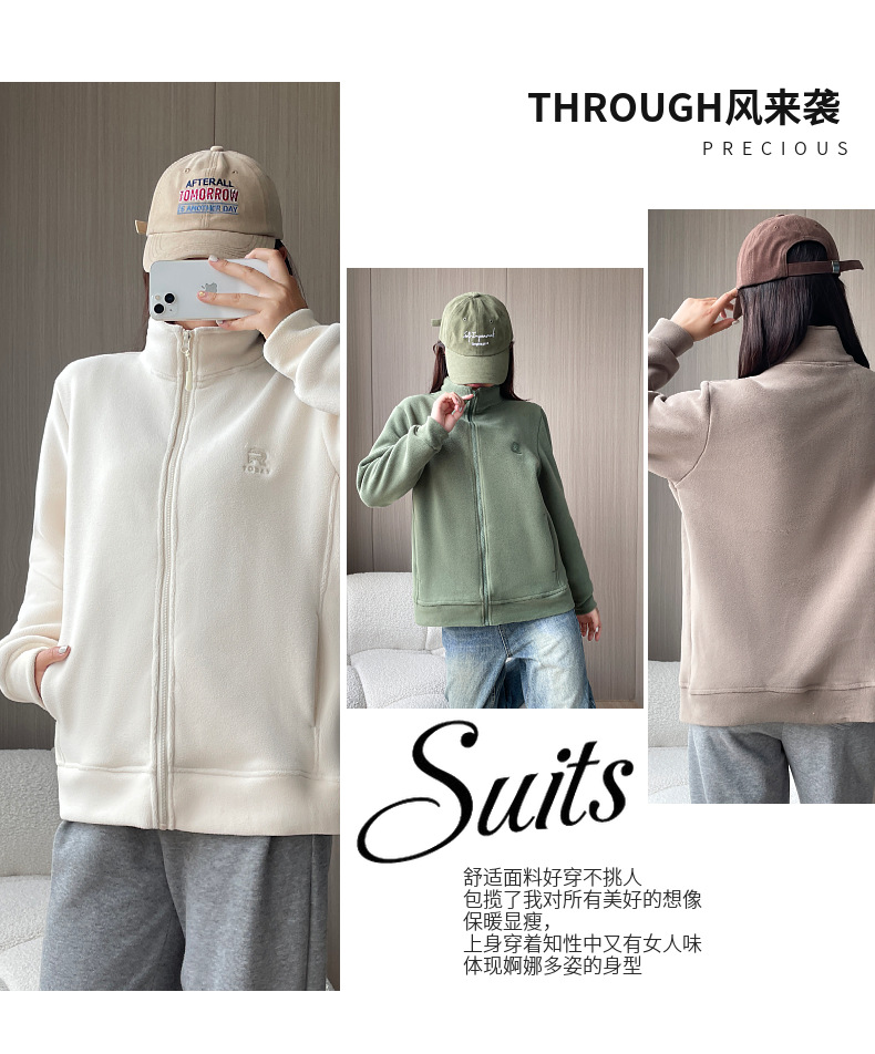 여성용 벨벳 자켓 두꺼운 겉옷 운동복 올매치 새로운 단색 칼라 따뜻한 지퍼 가디건