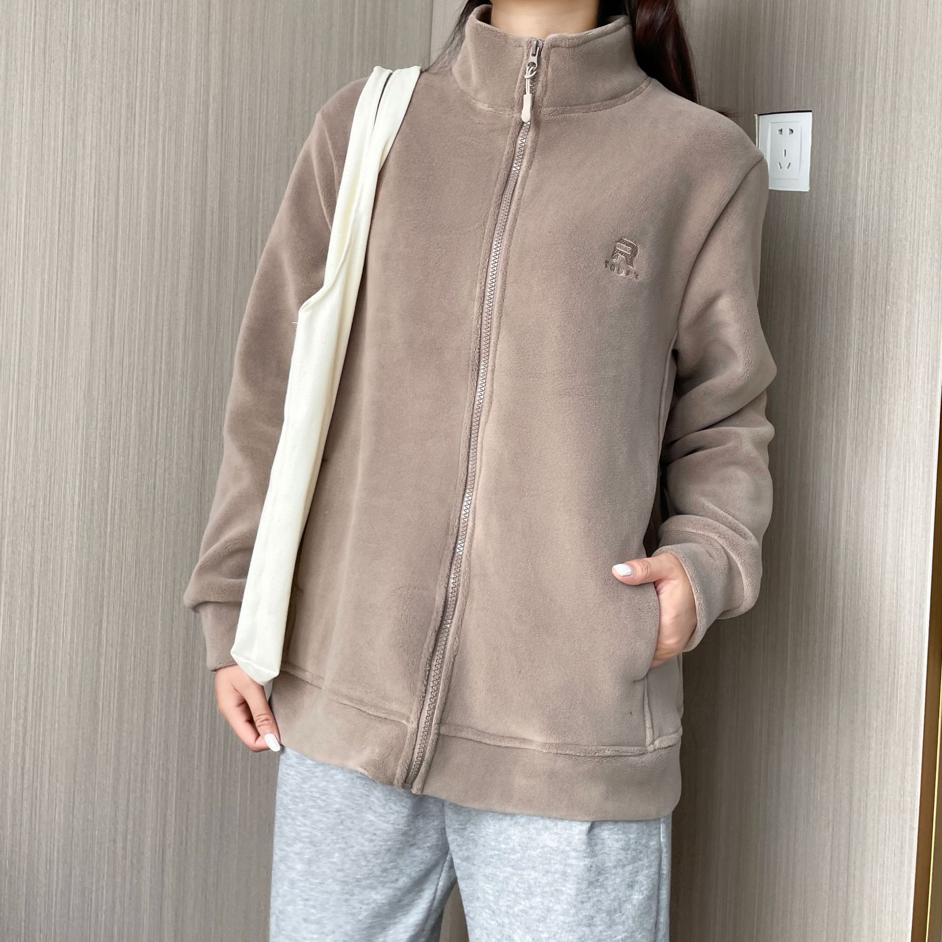 여성용 벨벳 자켓 두꺼운 겉옷 운동복 올매치 새로운 단색 칼라 따뜻한 지퍼 가디건스토어 가기