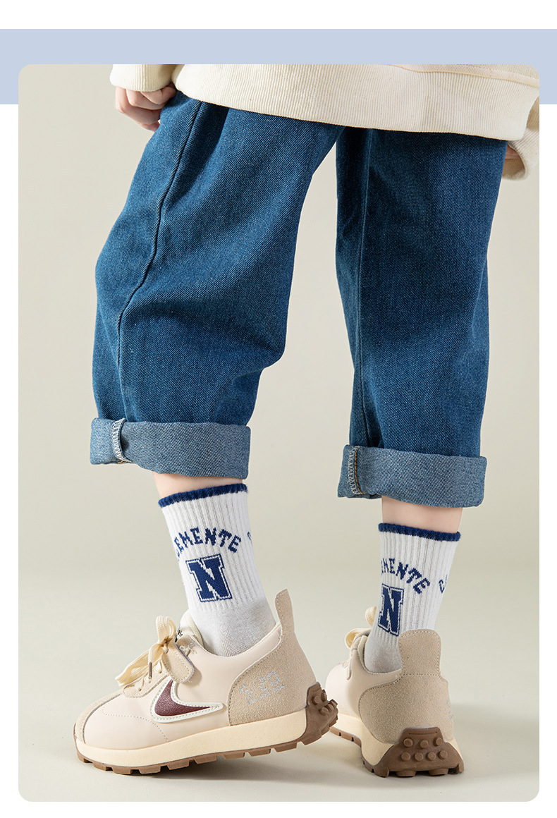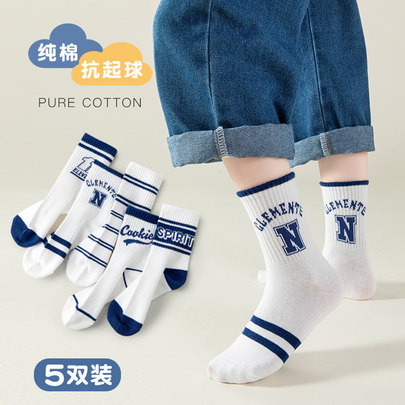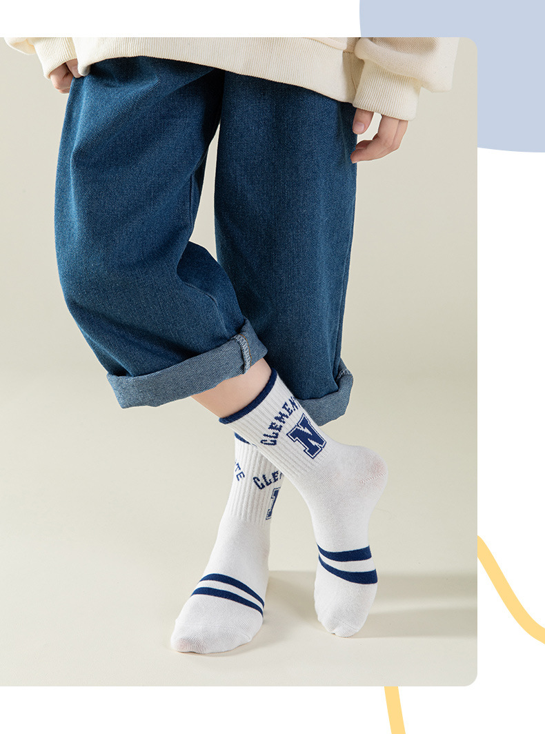 2023 아동용 양말 봄 가을용 면 중간길이 양말 11세 이상 어린이 학생용 땀 흡수 통기성 좋은 코마면 중간길이 양말