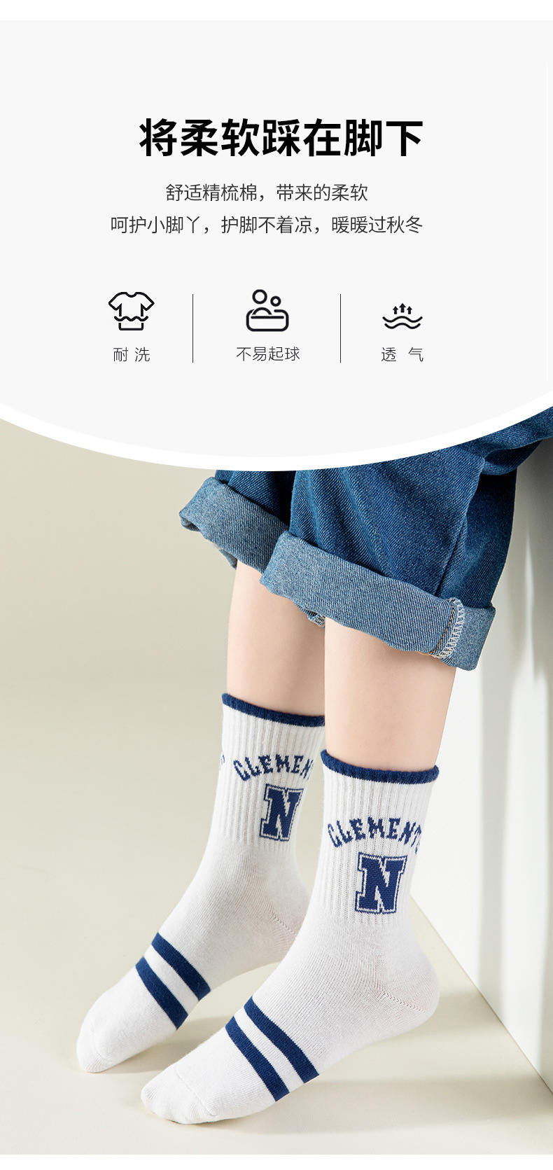 2023 아동용 양말 봄 가을용 면 중간길이 양말 11세 이상 어린이 학생용 땀 흡수 통기성 좋은 코마면 중간길이 양말스토어 가기