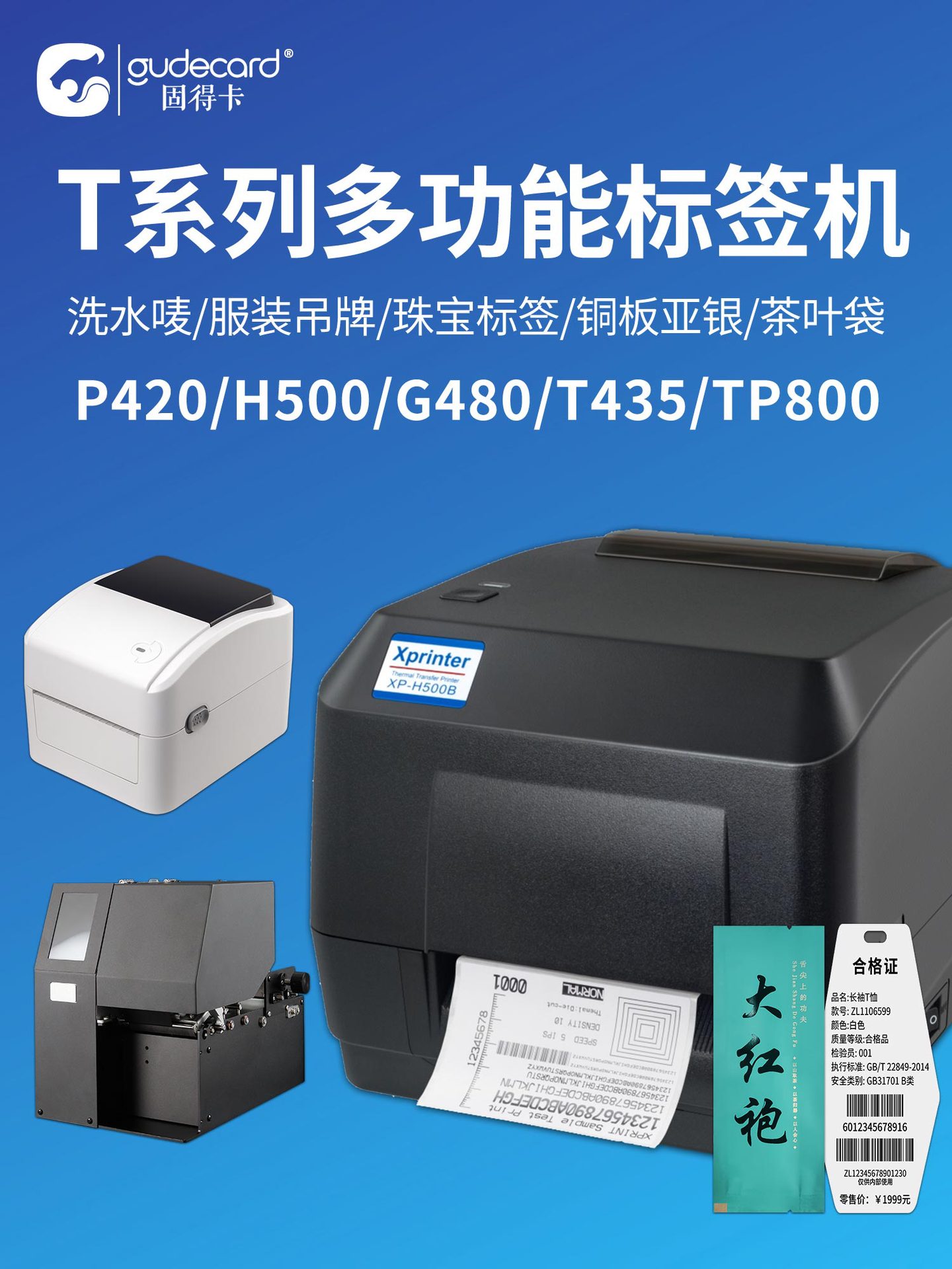 굿카 T 시리즈 라벨 프린터 의류 태그 세탁 라벨 바코드 보석 P420/T45x/GTP800