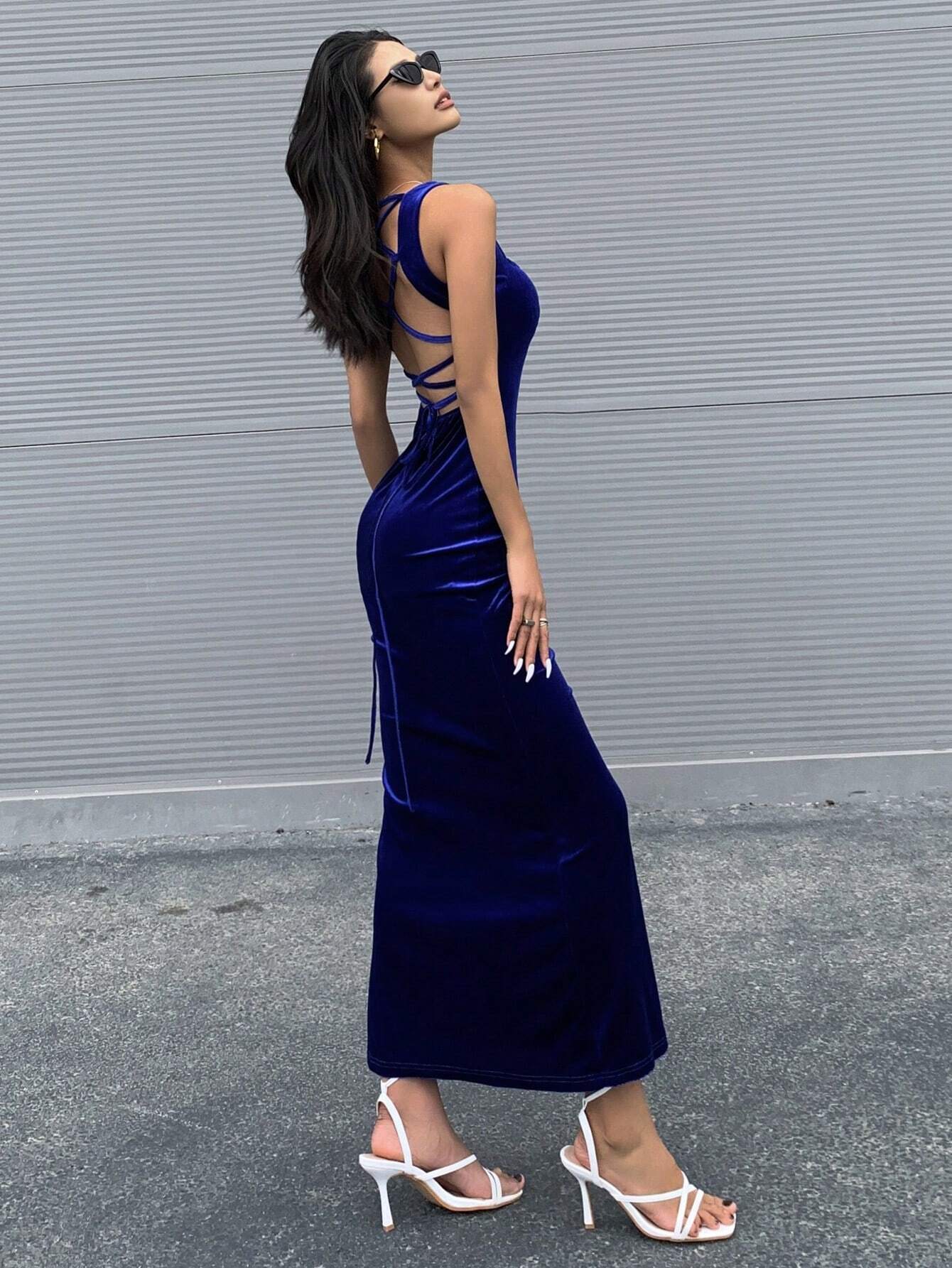 국경을 넘나 드는 유럽과 미국 여성의 2024 가을과 겨울 새로운 허리 슬림 핏 힙 섹시 백리스 피쉬 파티 원피스스토어 가기