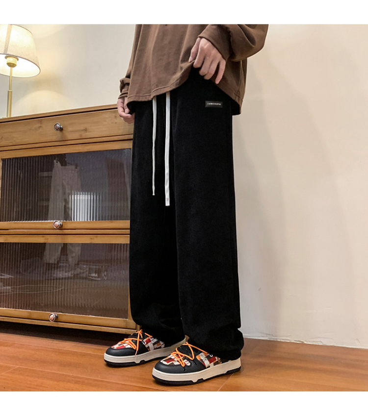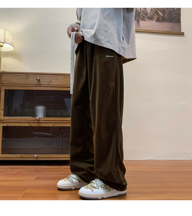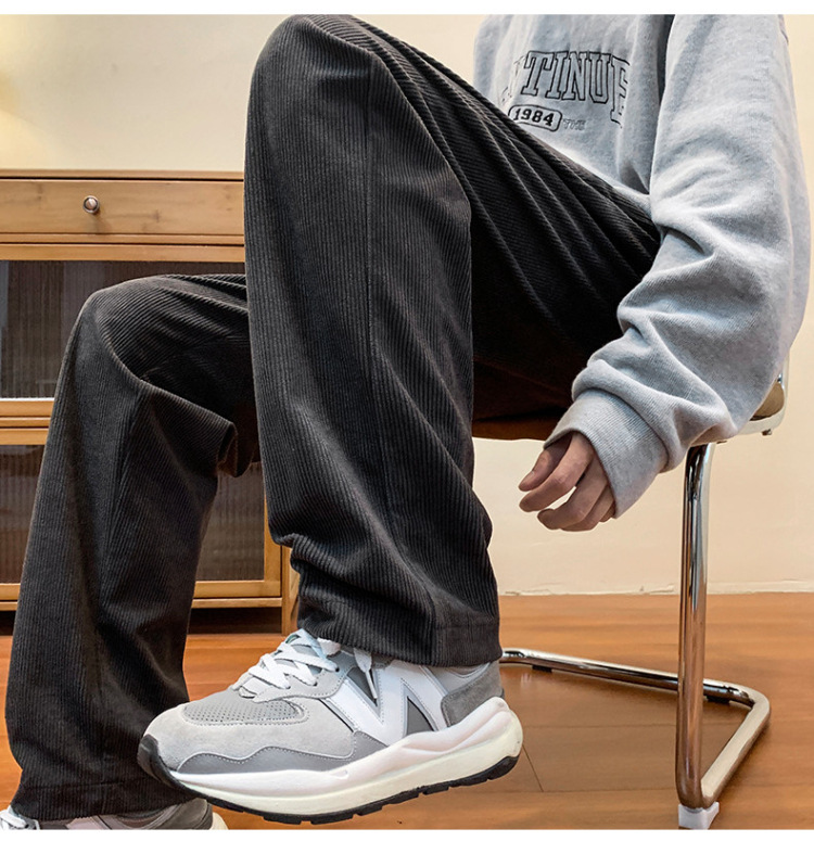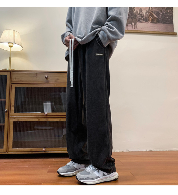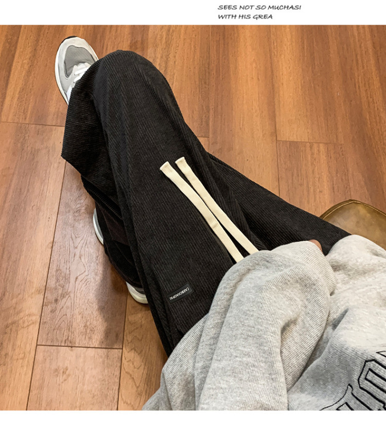 2024 가을, 겨울 새로운 홍콩 스타일 대형 캐주얼 바지 루즈 코듀로이 뚱보 트렌디 뚱보 스트레이트 바지 남성스토어 가기