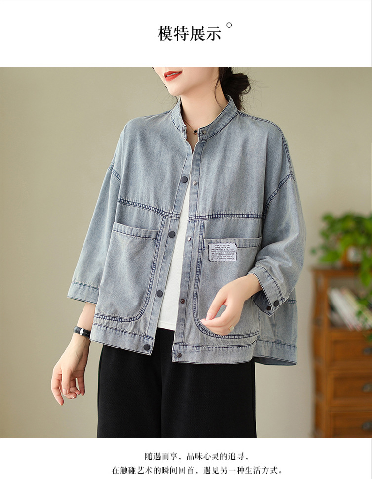 플러스 사이즈 여성의 경량 데님 재킷 여성의 새로운 2023 여름과 가을 한국 캐주얼 느슨한 올드 라벨 짧은 재킷스토어 가기