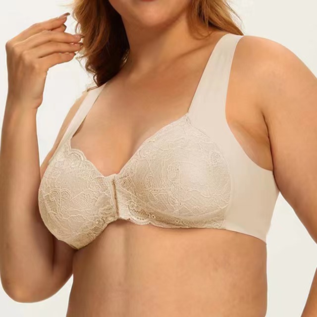 국경 간 얇은 플러스 사이즈 앞 버클 테두리가없는 브래지어 레이스 섹시한 추적없는 조끼 아름다운 등 조정 가능한 여성 속옷스토어 가기