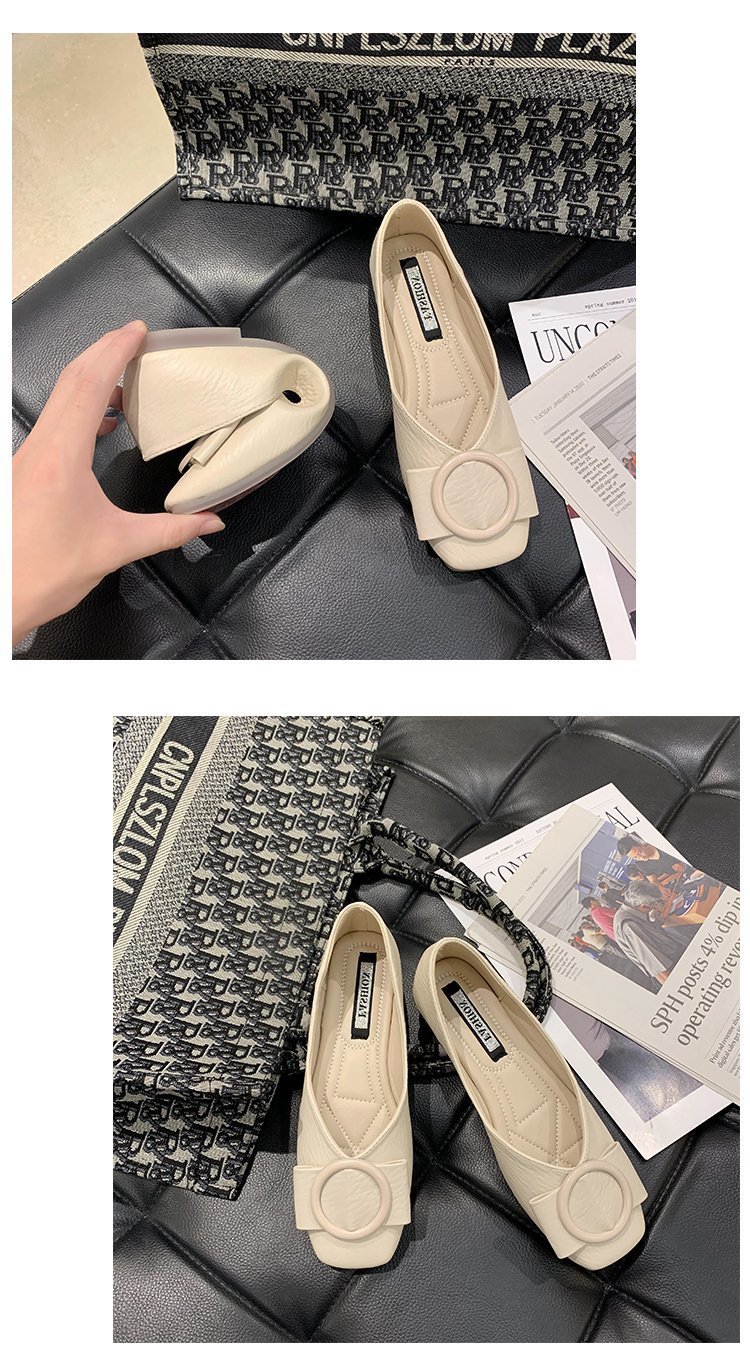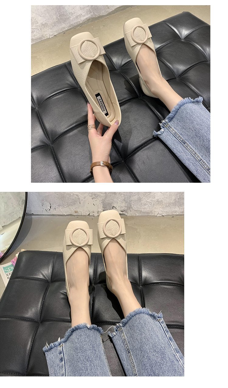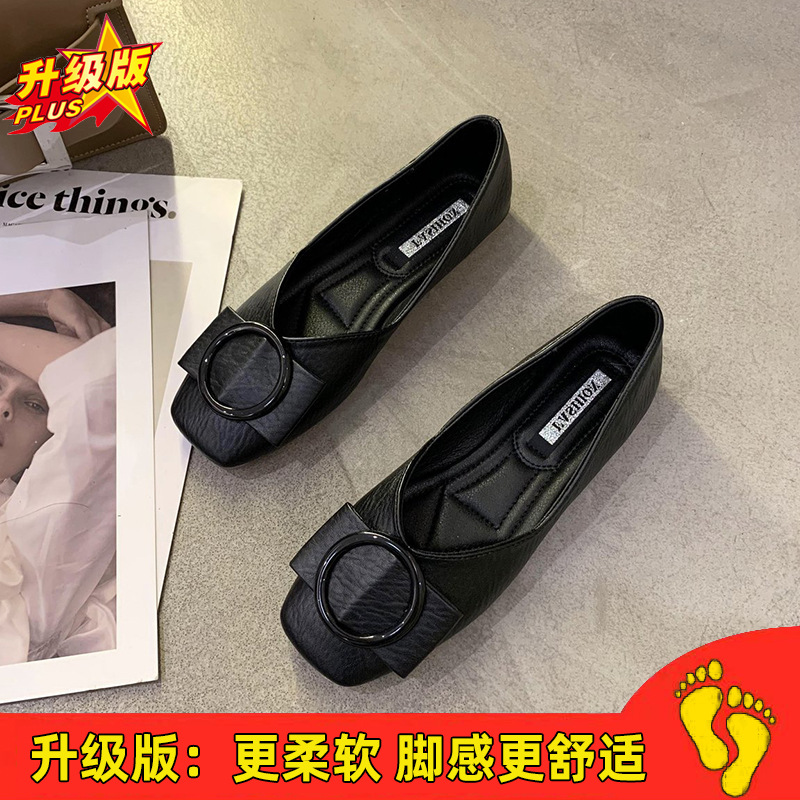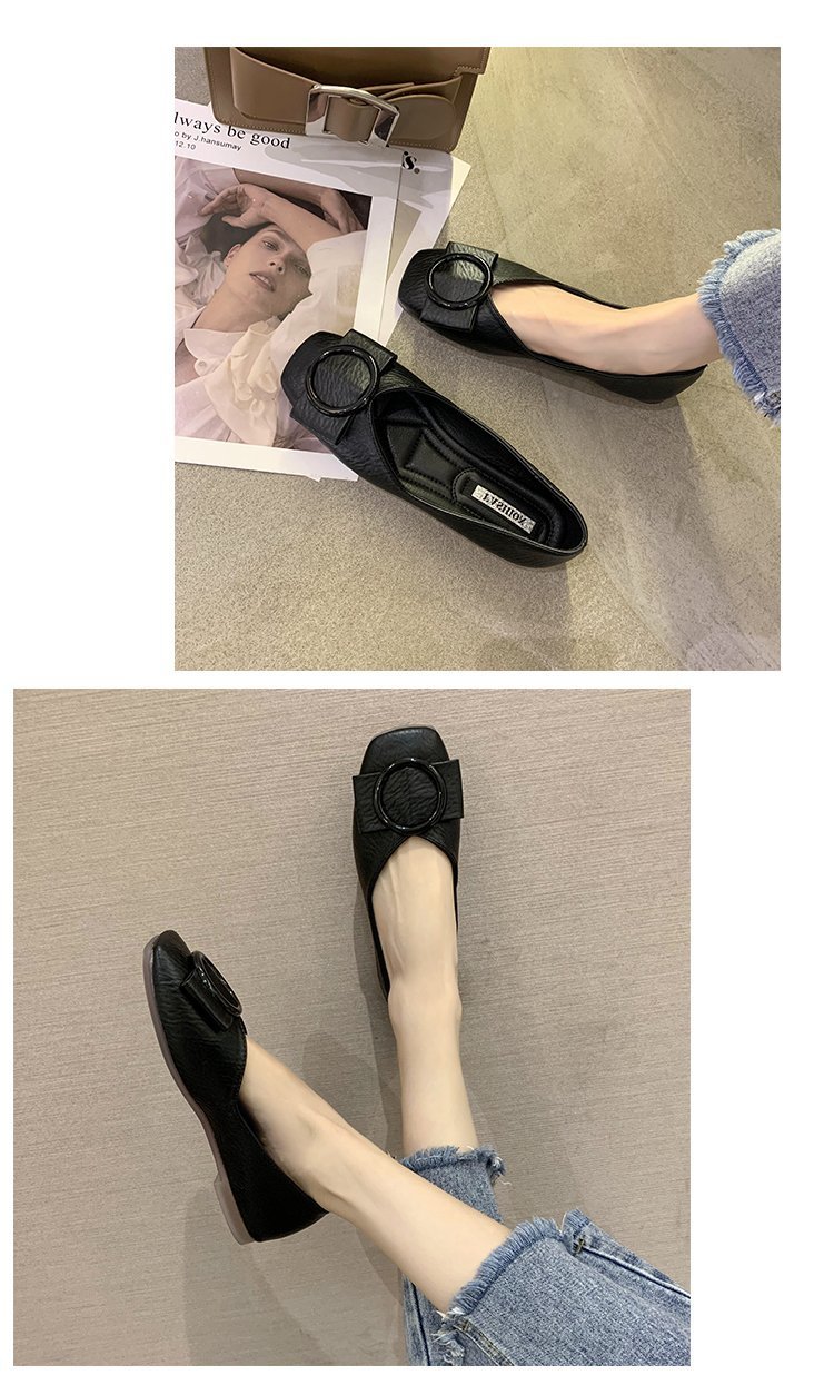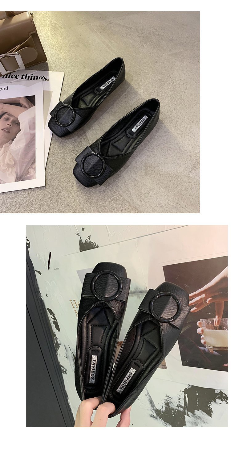 여성용 Doudou 신발 2025 봄, 가을 신상 얕은 앞코 사각 발가락 신발, 부드러운 밑창, 다용도 검은색 작업화, 작업용 플랫 슈즈스토어 가기
